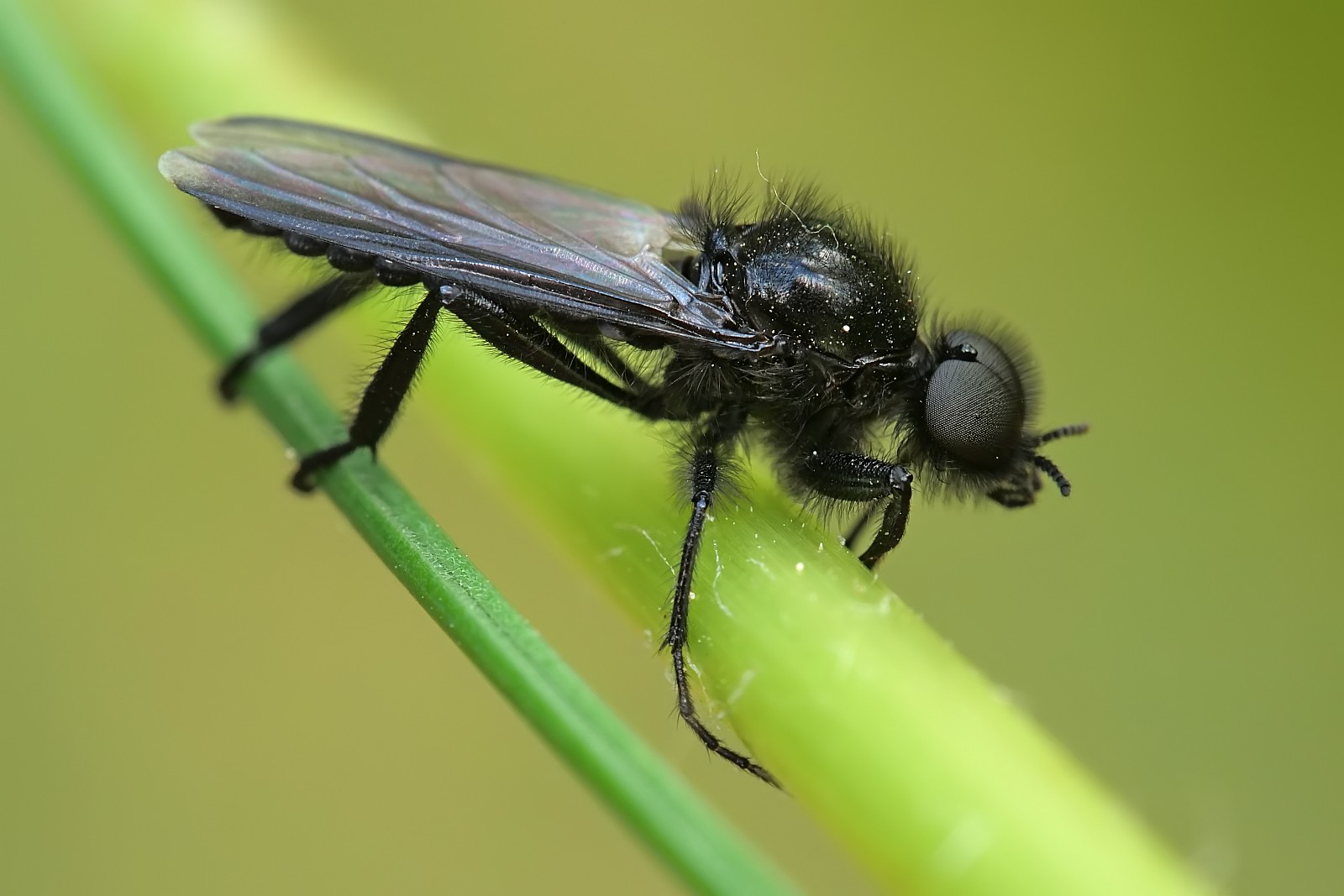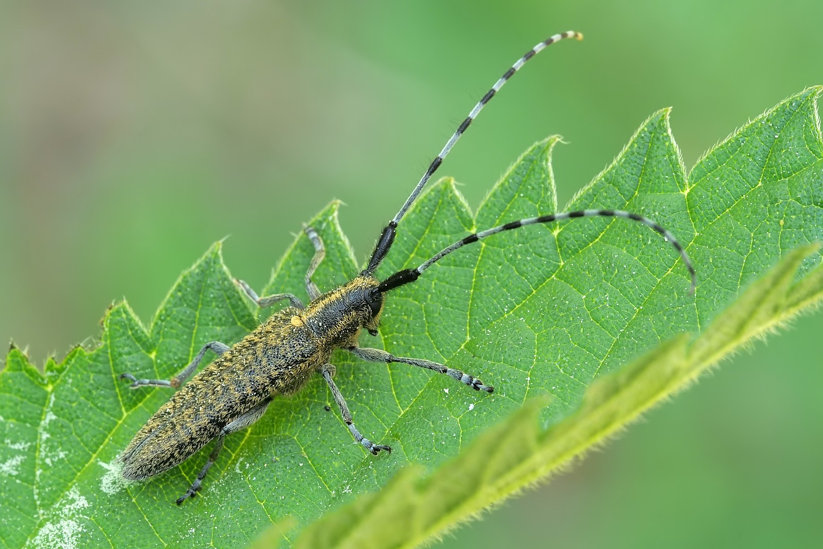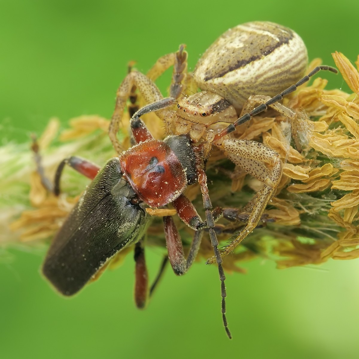 Po drugie odnóża - lepiej widać, jak owad trzyma się 2 źdźbeł trawy mimo, że sporo jest poza GO.