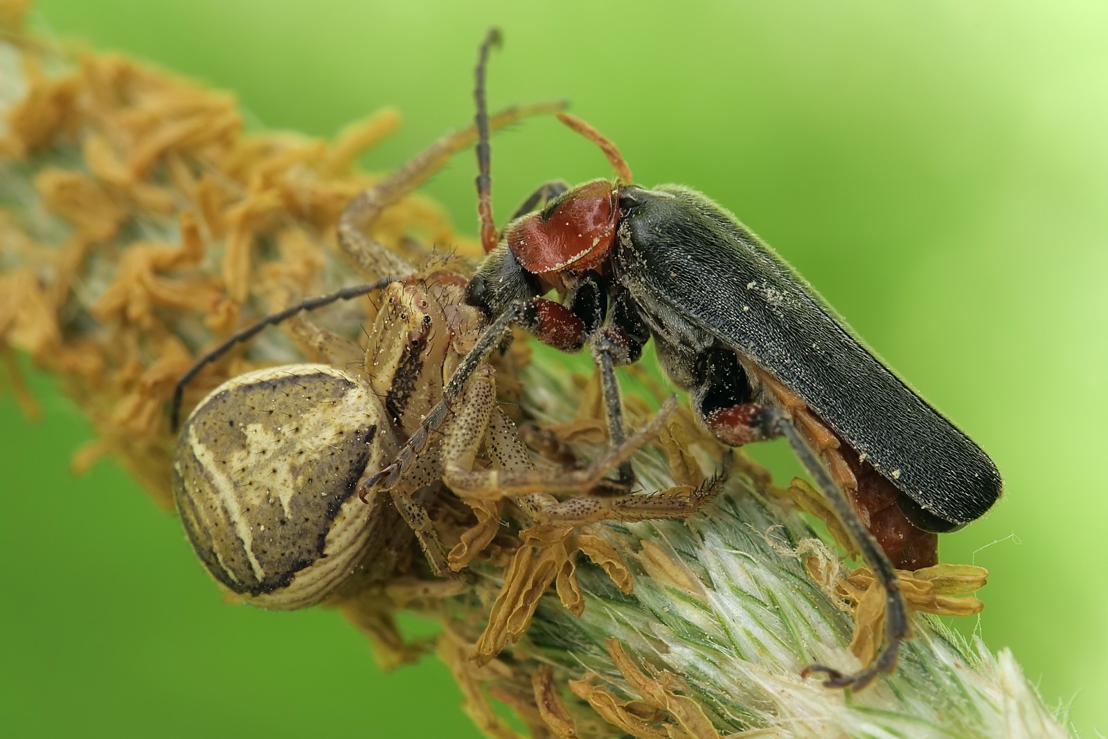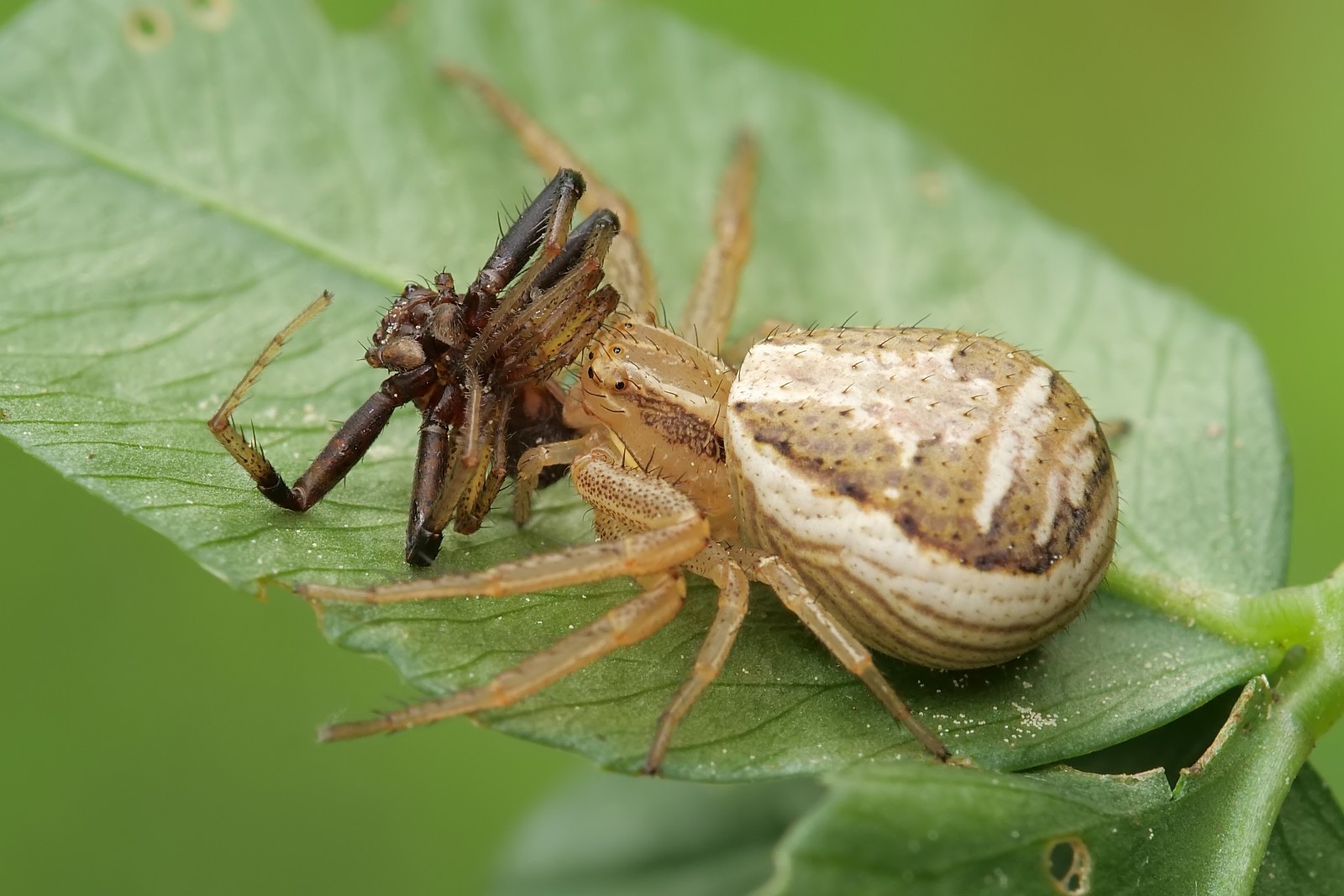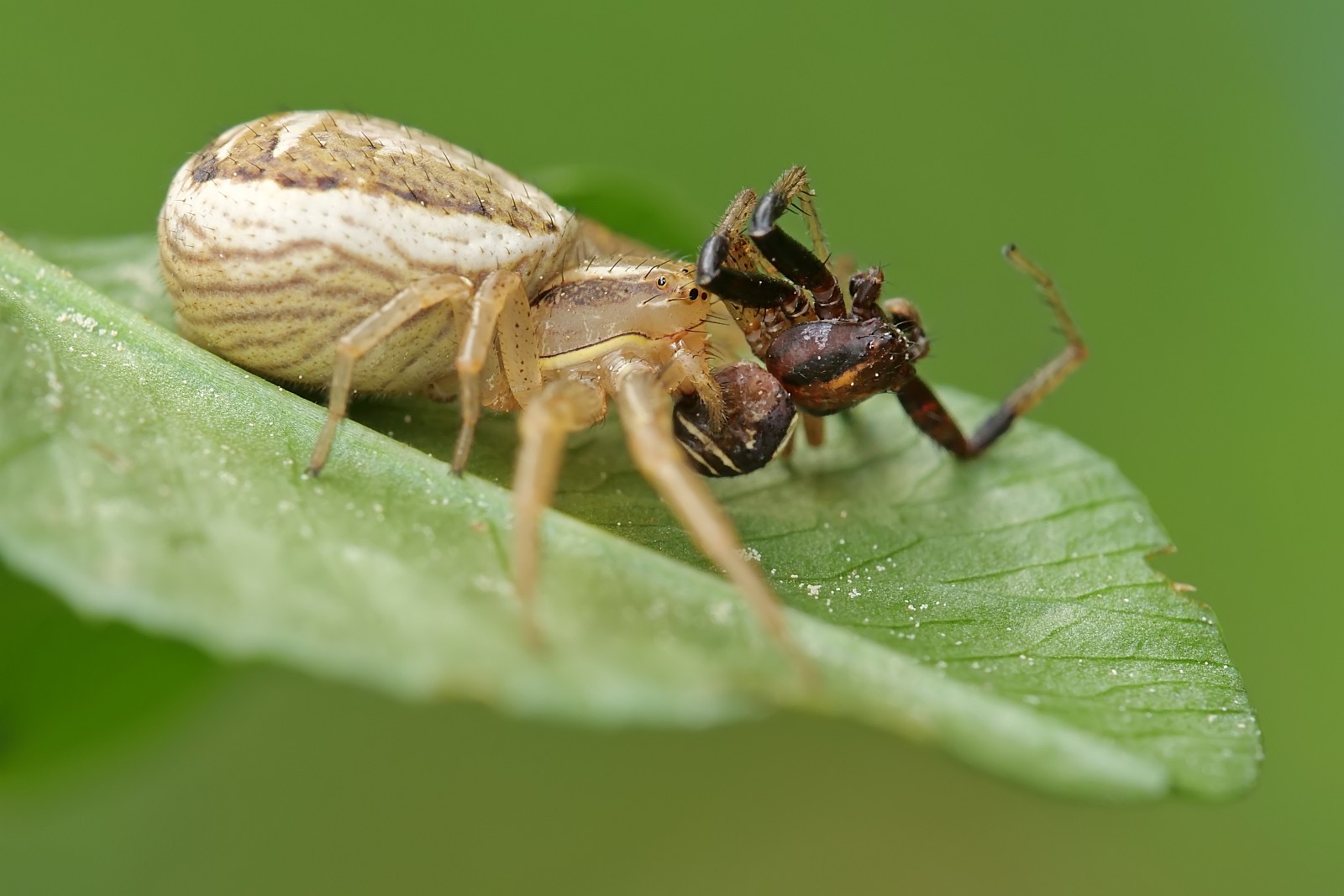 Kolejna mocna scena z bokochodem - samica bokochoda śmiałego zjada samca własnego gatunku. Być może samiec stał się przekąska po zakończonej kopulacji jak to często u pająków bywa: