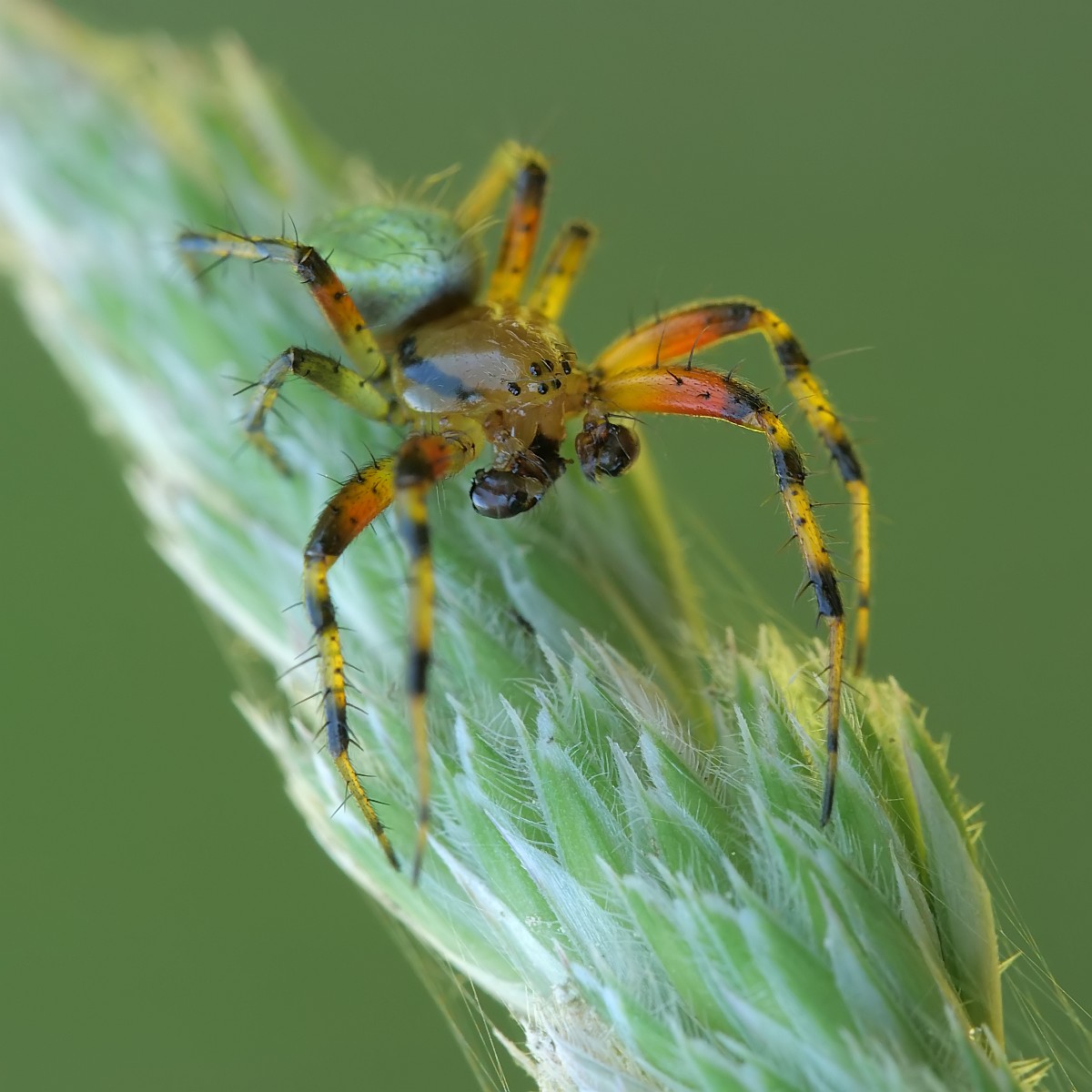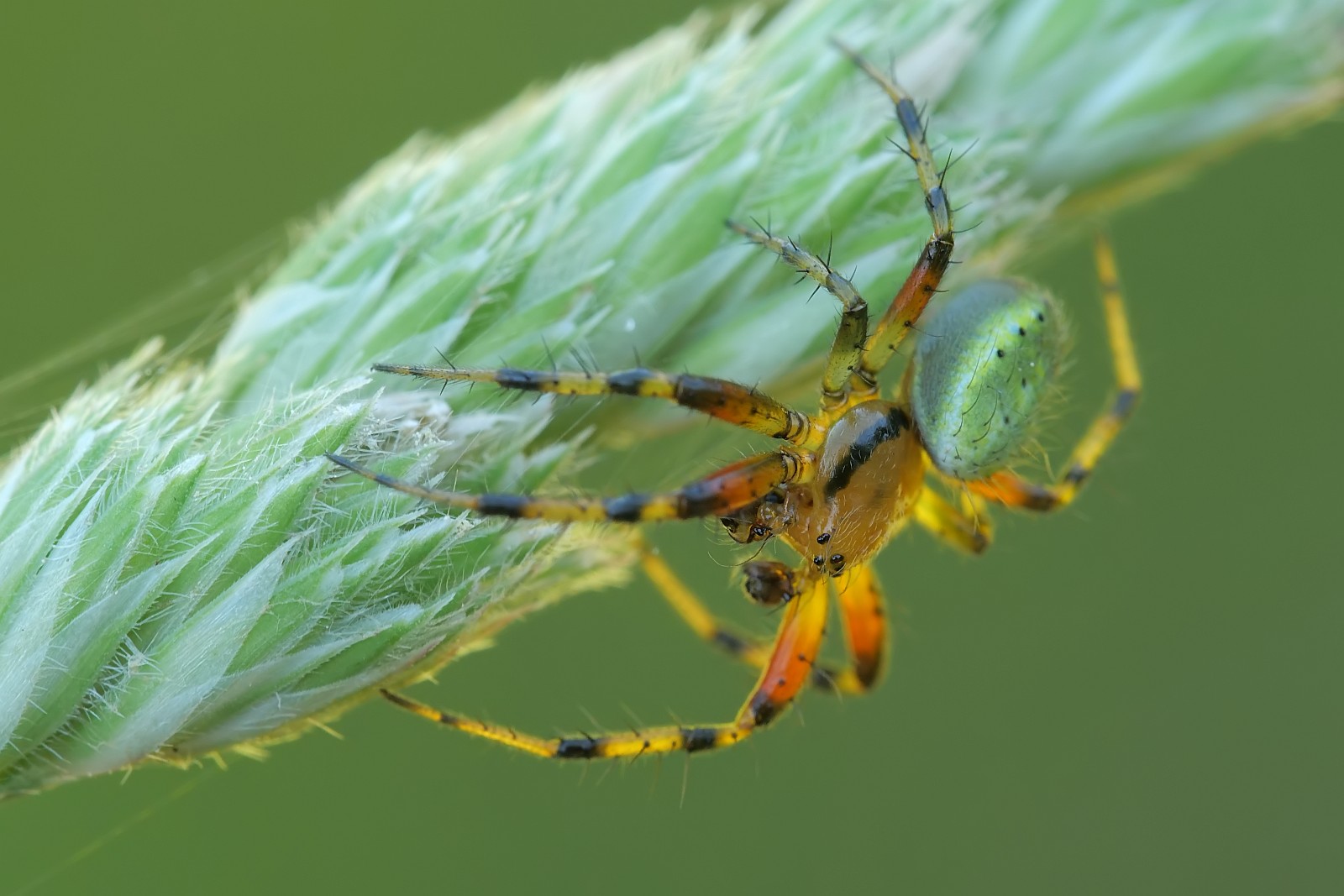Samiec nalistnika zielonego. Coś jadł, ale danie było małe i na tyle przemielone szczękoczułkami że nie zdołałem zidentyfikować co upolował: