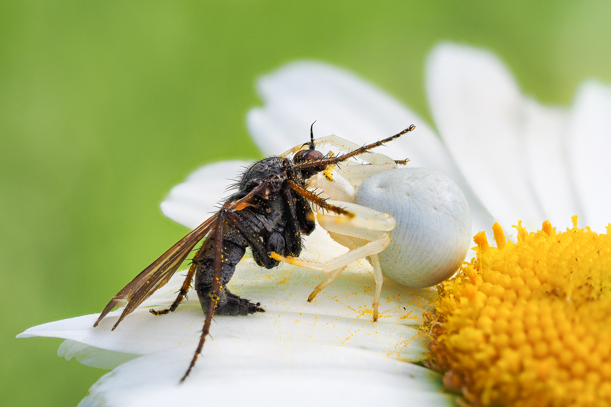 Jakoś nie mogę się przekonać do pająków :). Dziś widziałem parę akcji na łące.... Masakra :)