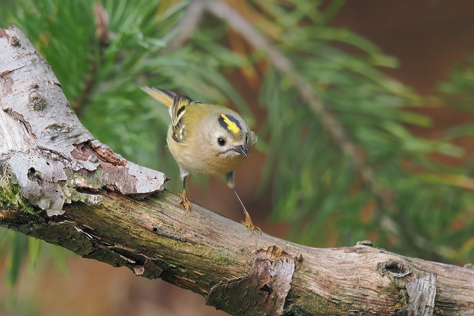 Najmniejszy polski ptak - mysikrólik - skaczący po gałęzi. O niezwykłej ruchliwości tego ptaszka świadczy fakt że wszystkie trzy poniżej pokazane zdjęcia zostały zrobione w czasie ok. 4/10 sekundy: