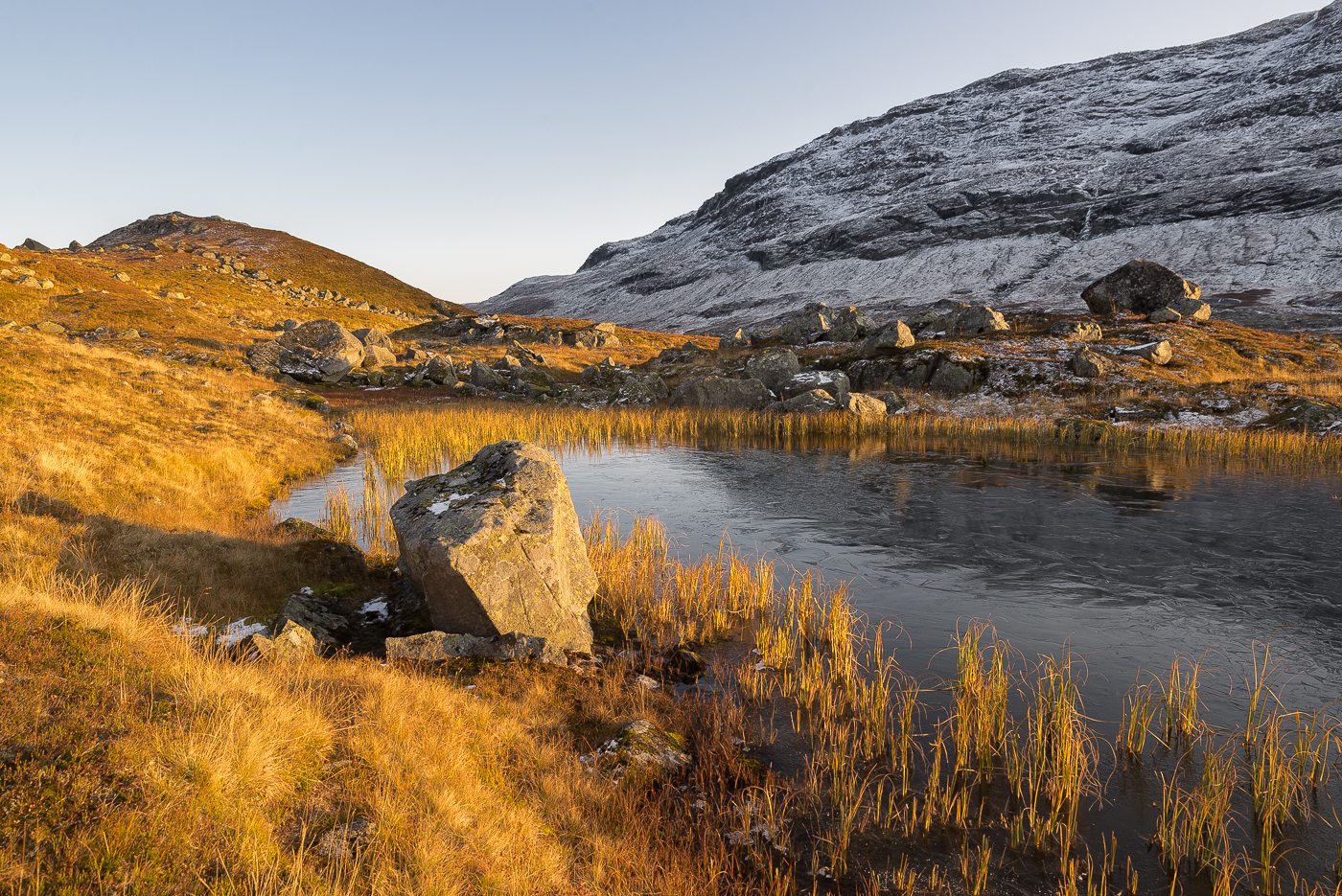 Na marginesie dodam, bo nie napisałem, Są to góry Telemark. To był tam, ostatni piękny dzień zeszłej jesieni. Tej nocy przyszła fala chłodów, mrozu i opadów śniegu.
