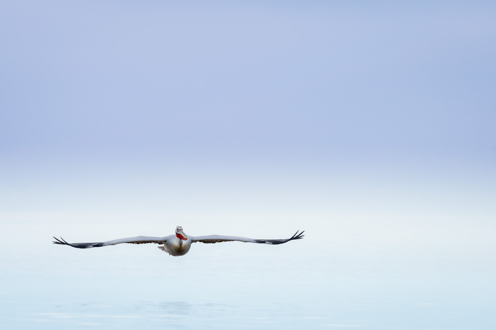 Wyłaniający się z mgły i nieruszający skrzydłami pelikan sprawiał wrażenie jakby był zawieszony w powietrzu. Ten nieco surrealistyczny widok sprawił, że omal nie zapomniałem, że mam aparat w ręku. :wink: