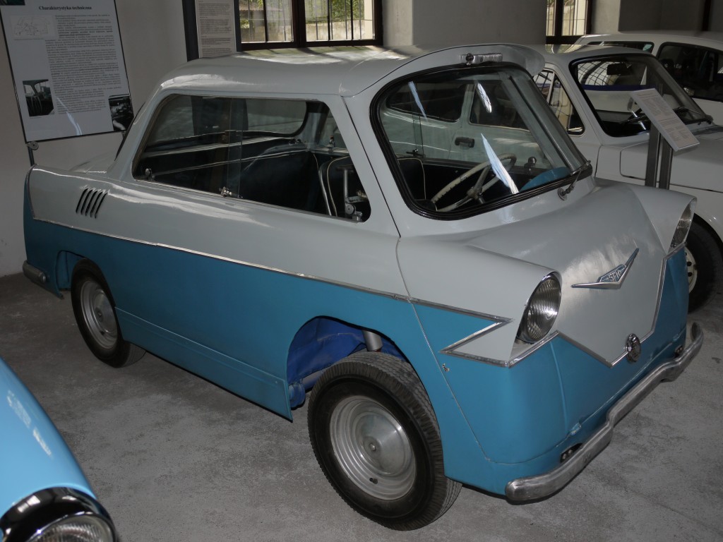 1. SFM Smyk B30 miał być produkowany w Szczecińskiej Fabryce Motocykli. Cechami wyróżniającymi ten pojazd jest silnik adaptowany z motocykla Junak oraz tylko jedne drzwi, które były jednocześnie przodem auta otwierającym się w dół. Podobne rozwiązanie było w samochodzie BMW Isetta, z tym że tam drzwi otwierały się na bok. W 1957 roku wyprodukowano od 17 do 20 sztuk tych pojazdów, a rok później jeden prototyp o nadwoziu z tworzyw sztucznych. Produkcji seryjnej nie podjęto ze względu na bardziej perspektywiczny projekt Mikrusa. Na zdjęciu eksponat z Muzeum Inżynierii Miejskiej w Krakowie.