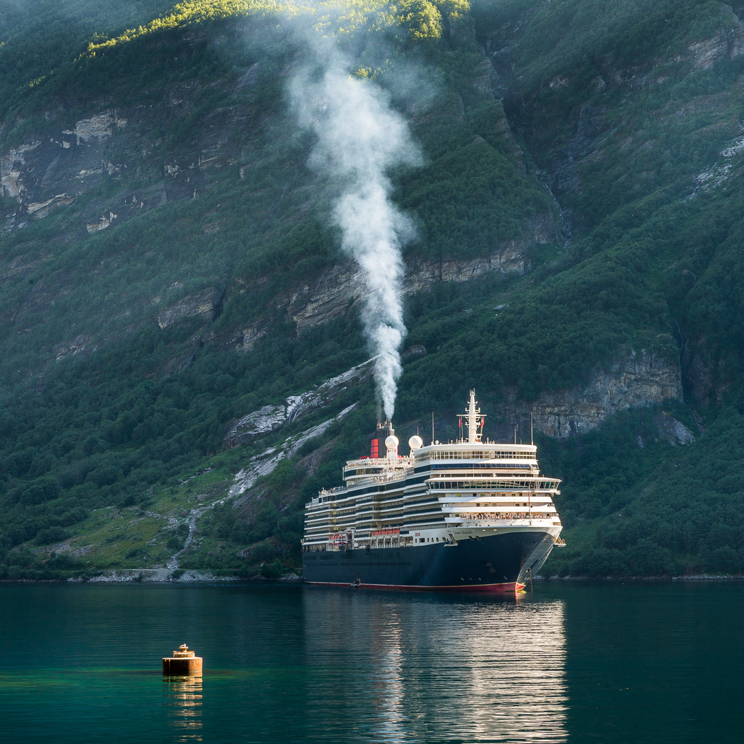 Ten wycieczkowiec jest olbrzymi - jak 1/3 fiordu :)