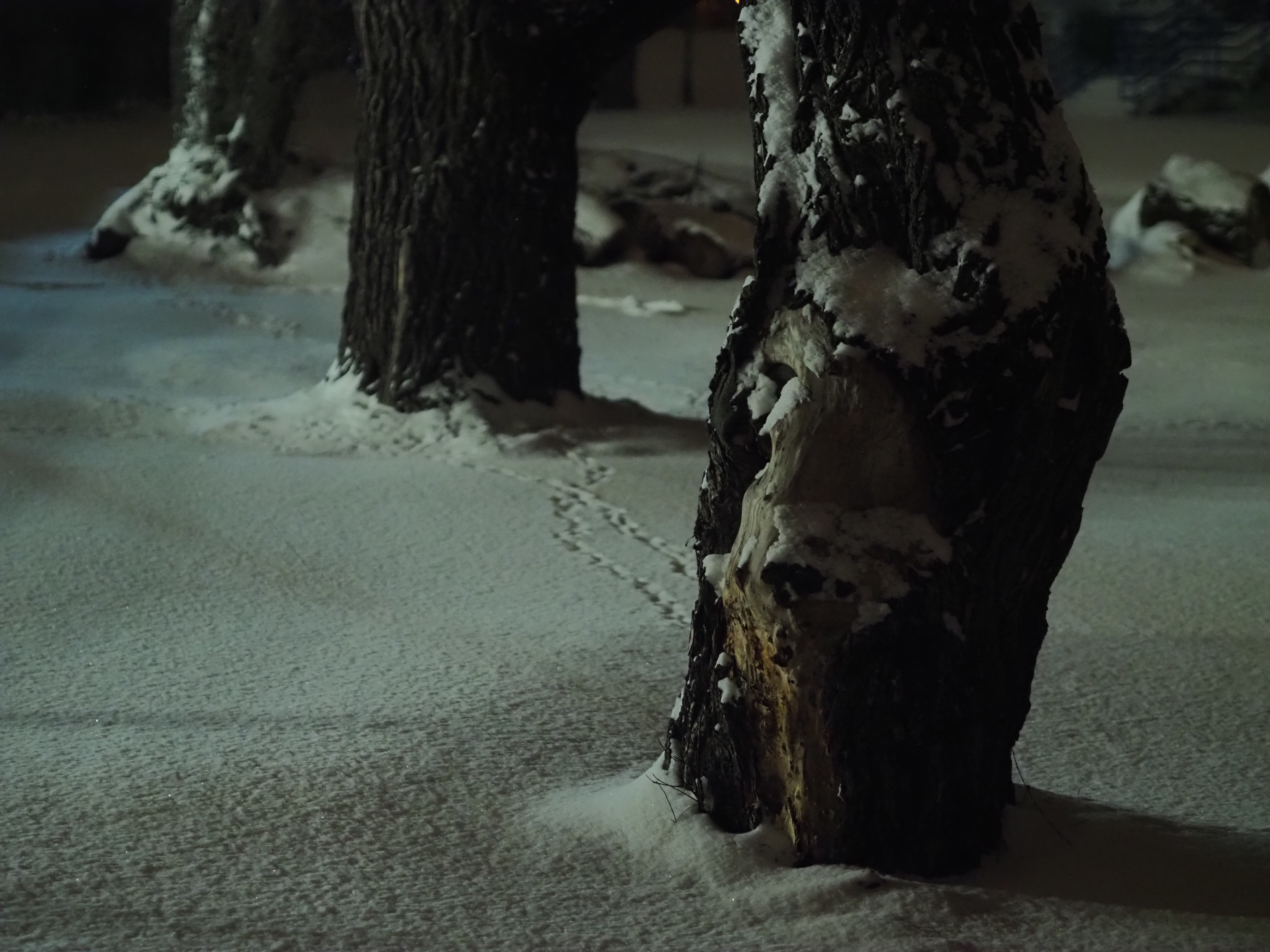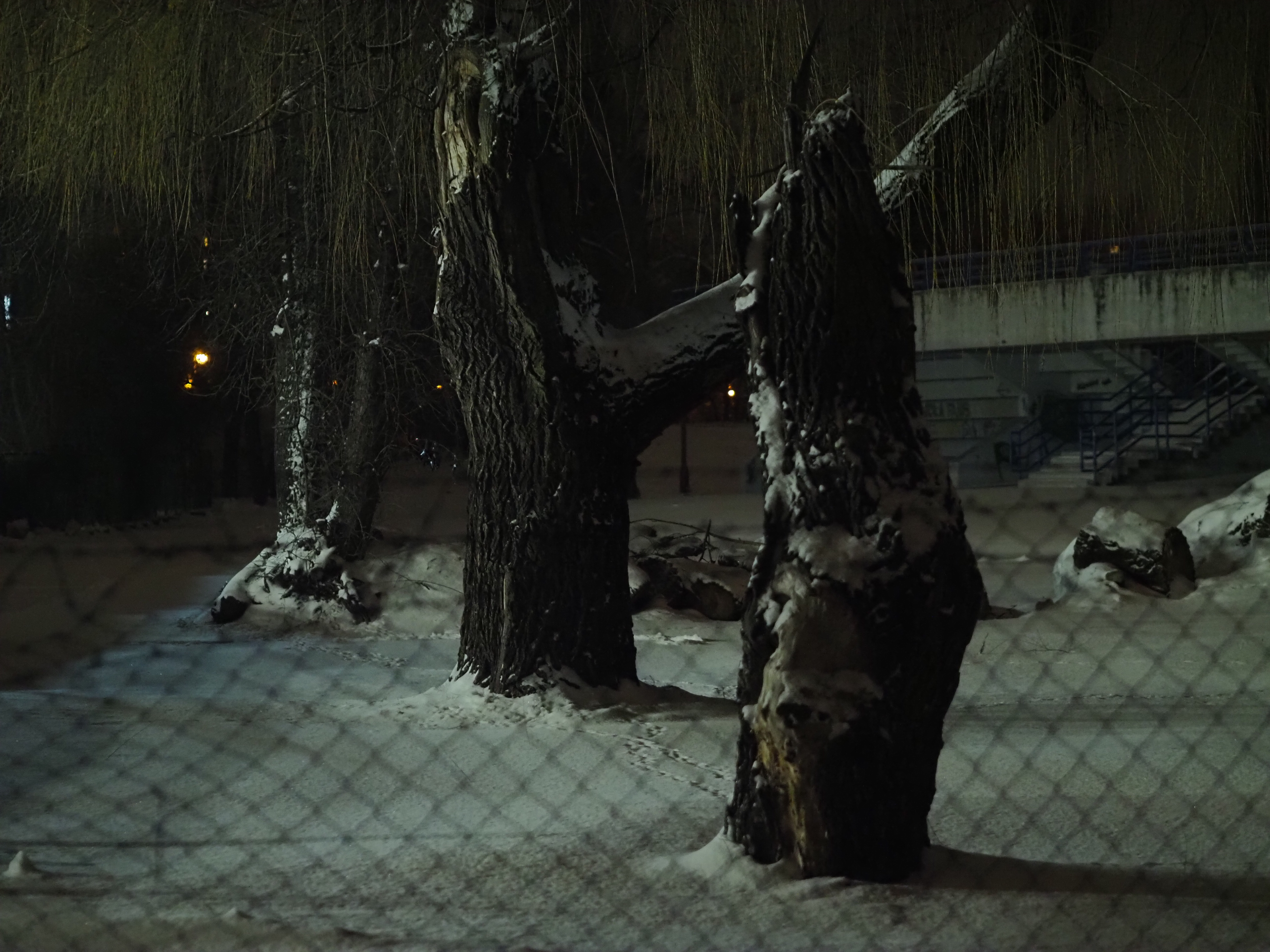 Jeszcze jedno nocne ze światłem lamp sodowych. Mam odwieczny dylemat: ma być żółto czy nie. Tu jest to o tyle istotne, że na zdjęciu jest śnieg. Ma być biały w żółtym świetle?