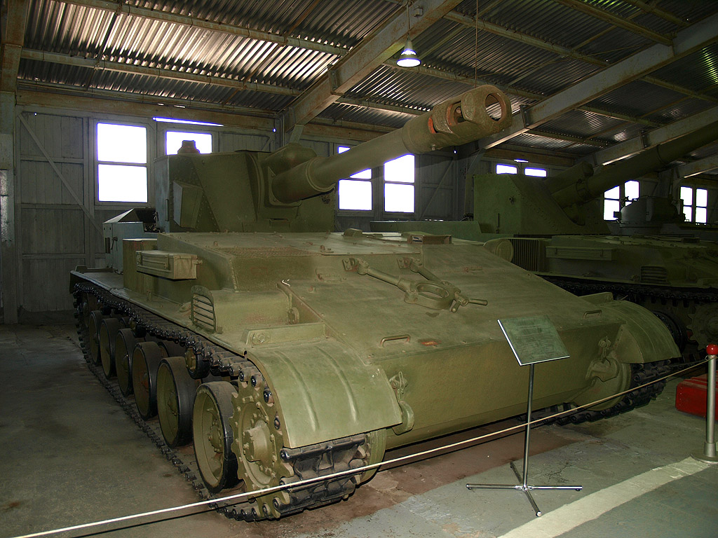 Kolejne radzieckie pojazdy pancerne. Nr 125 to ciężki czołg IS-2M (skrót od Iosif Stalin) z II W.Ś. Następne dwa zdjęcia przedstawiają prototypowe współczesne działa samobieżne bazujące na tym samym nośniku mającym oznaczenie GM-100, które nie były produkowane seryjnie. Nr 126 ukazuje SU-152G, a nr 127 SU-152P.