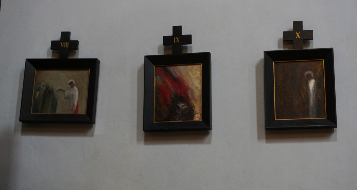 Zapamiętałe, że sa nietypowe i ładne. Dziś się udało było światło we wnętrzu, msza się skończyło, kościół opustoszał i nikomu nie przeszkadzałem