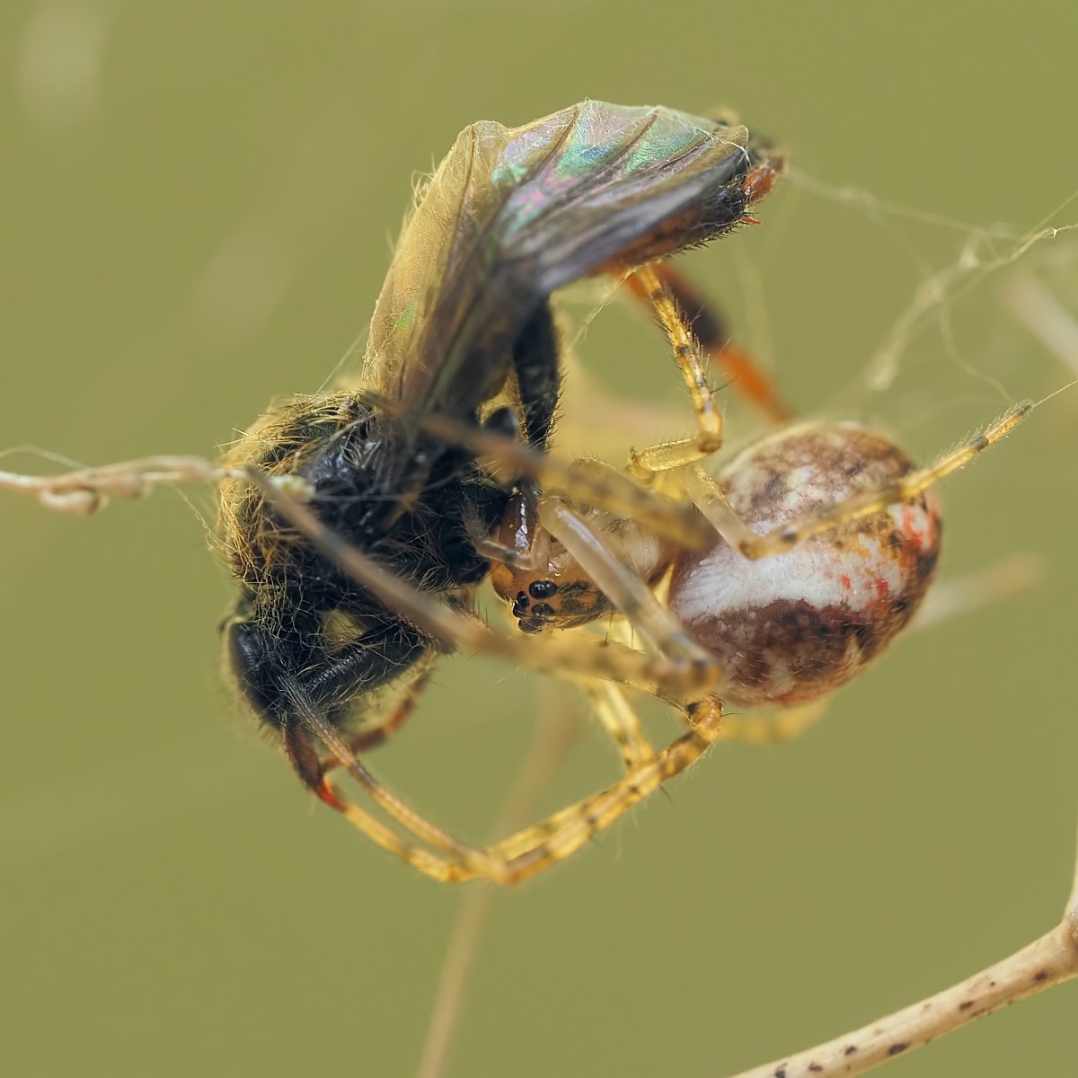 Czaik wiosenny z ofiarą - prawdopodobnie jakimś leniem. Na stack z kilku klatek szans nie było - wiatr powodował że wszystko w kadrze drgało: