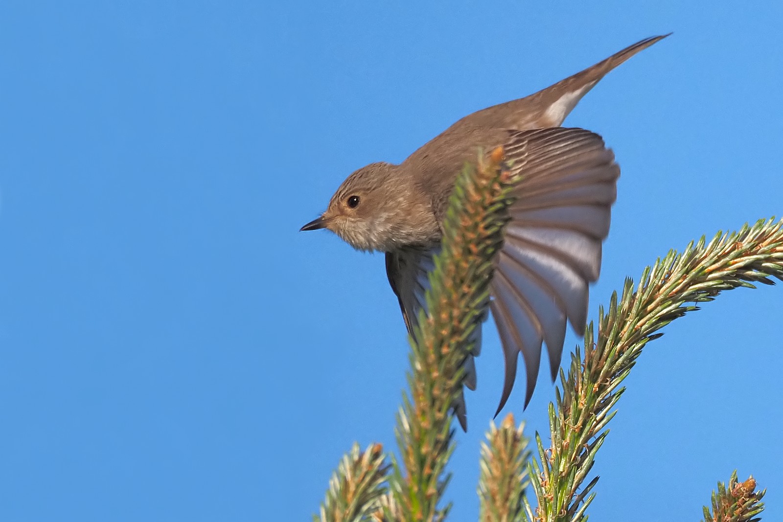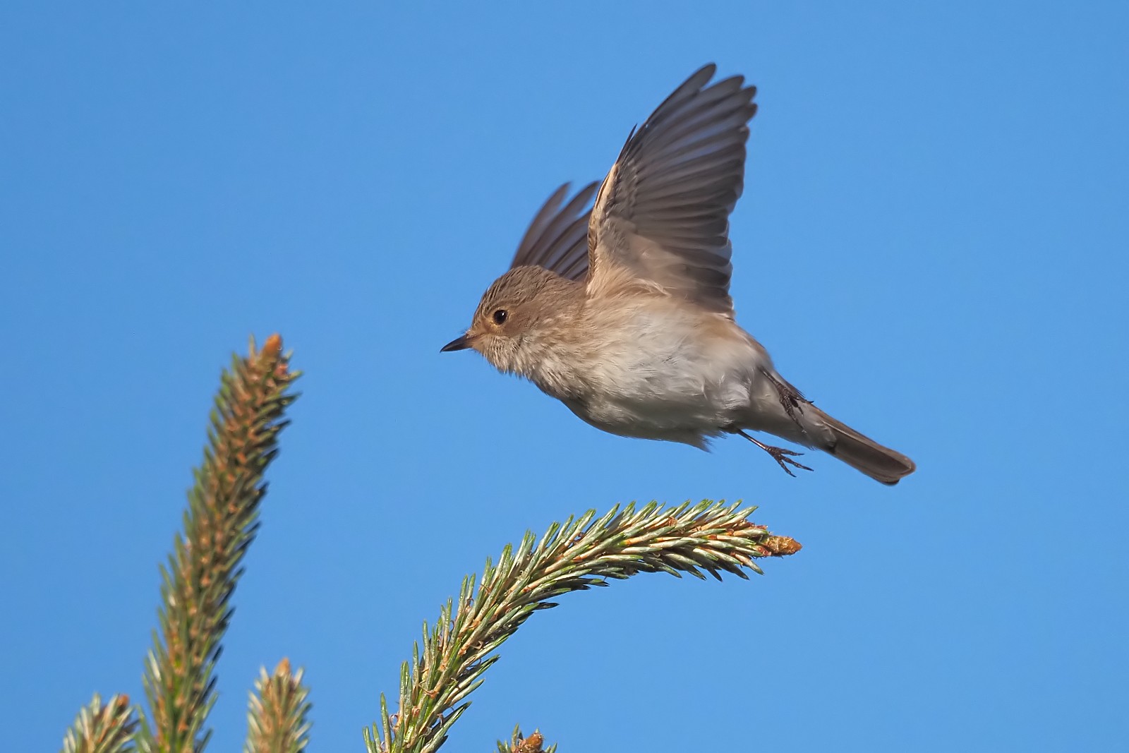 Dziś efekty zabawy funkcją Pro Capture - start muchołówki szarej. Szkoda tylko że z niewłaściwej strony gałązki przeleciała: