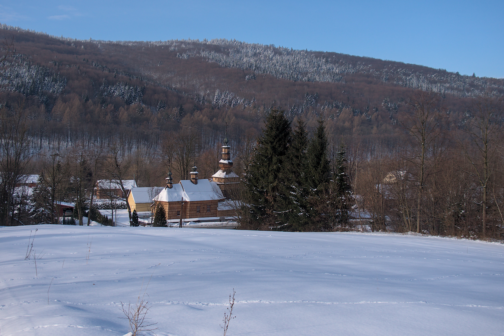 Ładny kościółek w Ropicy a i zimowe plenerki wpadają z sympatią w oko.