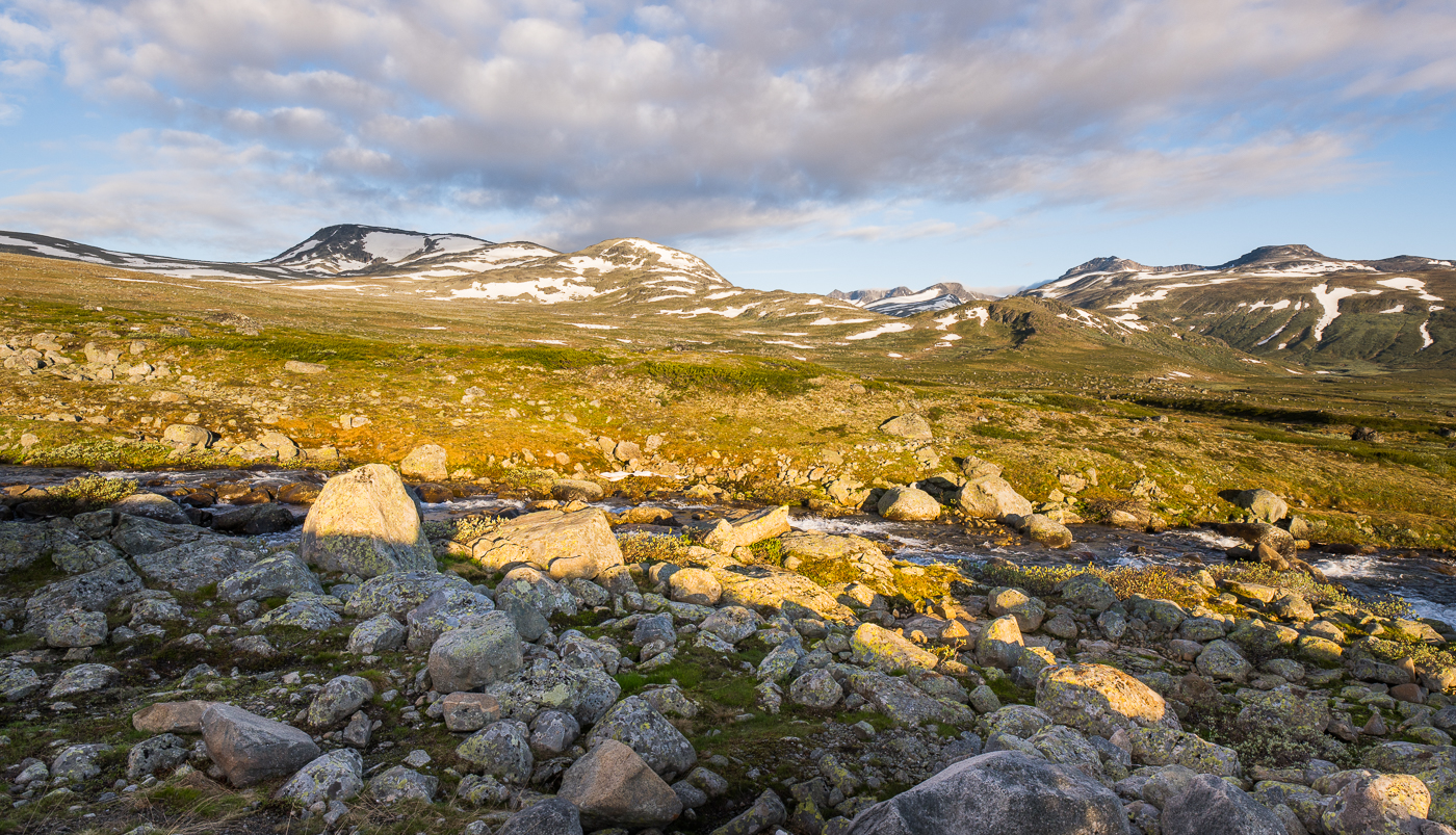 Mogę śmiało powiedzieć,że pogoda nie rozpieszczała przez pierwszych parę dni. Szczęśliwie się złożyło, że słońce pokazało się gdy jechałem drogą 51 przez Jotuncheimen. Tak na marginesie to obok drogi 55 jedna z piękniejszych dróg krajobrazowych w Norwegi. To droga "obowiązkowa" dla zwiedzających ten zakątek świata.