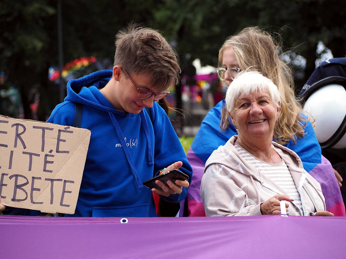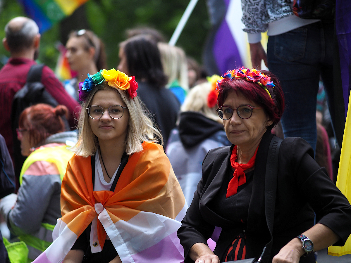 Po stronie manifestantów są panowie przebrani za panie, po stronie policji są panie przebrane za facetów, fajnie się to uzupełnia... ;)