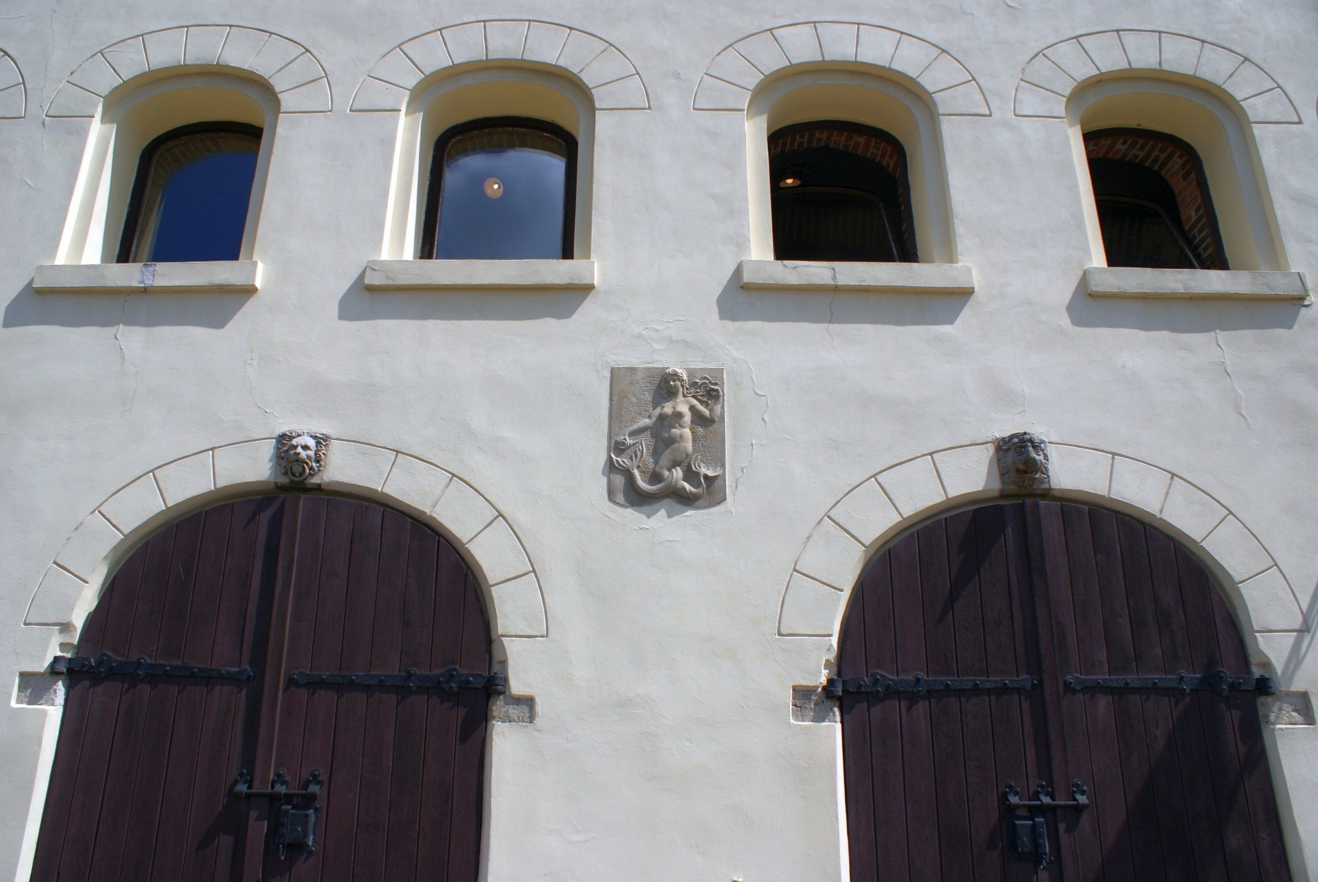 Gd32. Wielka Zbrojownia - najpiękniejszy, najbardziej zdobiony zabytek w Gdańsku. Herb Gdańska na fasadzie zachodniej (od ul. Piwnej).