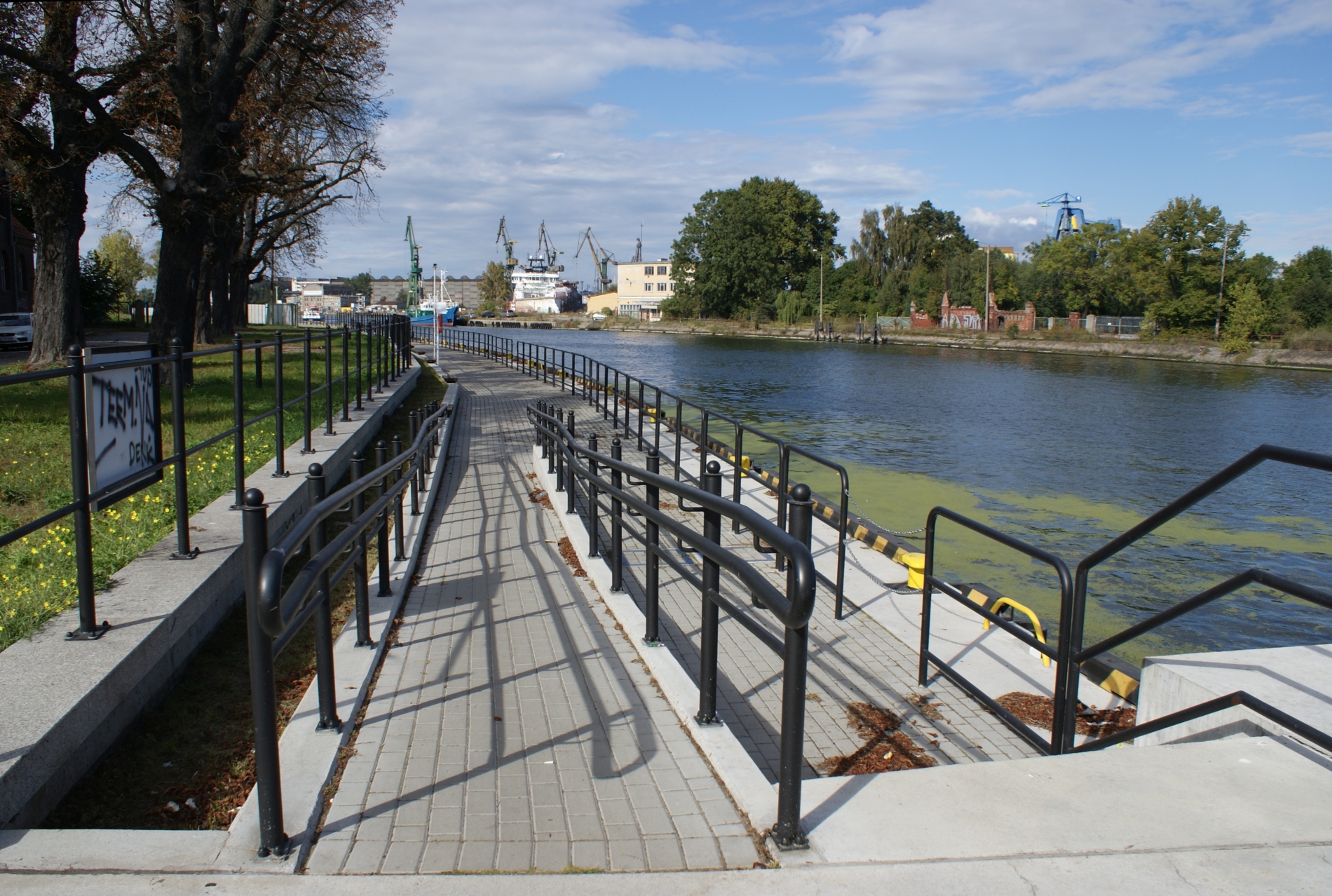 Gd29. Widok na ujście Motławy do Martwej Wisły. Deptakiem widocznym na zdjęciu można dojść, dojechać rowerem do samego ujścia