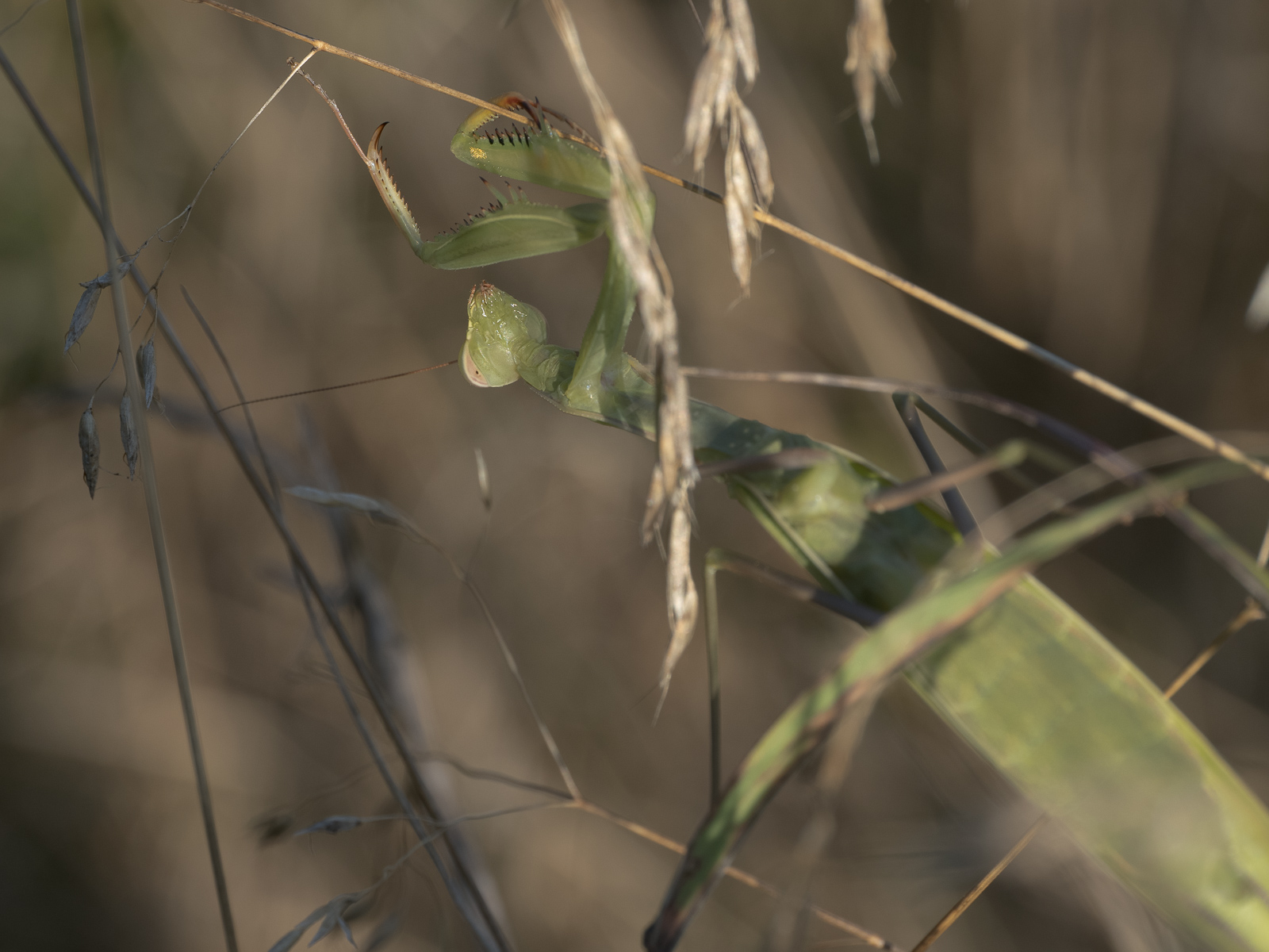 Na pierwszym zdjęciu obróbka wystartowała od "Camera Natural", a na drugim od "Linear OM Digital Solutions OM-1". Sam już nie wiem jakiego koloru naprawdę była modliszka. Myślę, że coś pomiędzy obiema wersjami. Bardziej żółta niż na pierwszym zdjęciu i bardziej zielona niż na drugim.