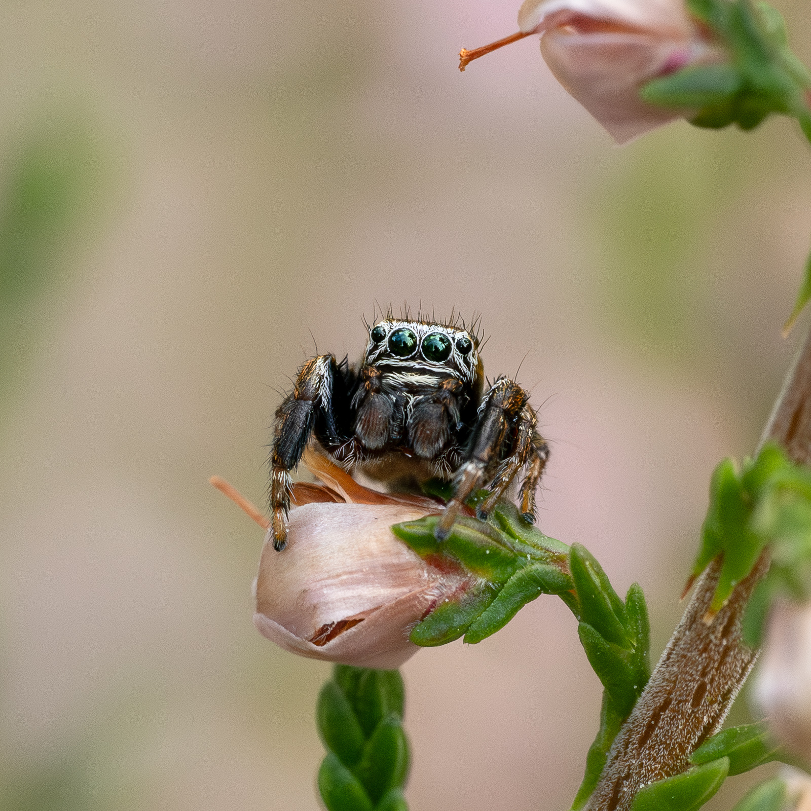 Kilka ujęć pyrguna natrawnego. Szukał i szukał, a ja wodziłem za nim wzrokiem. Ale nie znalazł, więc dokumentacji uczty nie będzie. Był bardzo ruchliwy, a do tego poruszał się we wrzosach, co nie ułatwiało zrobienia tak dużego zbliżenia, jak lubię. Tylko jedno zdjęcie, ostatnie, jest na prawdę z bliska, ale kadr niestety słaby.