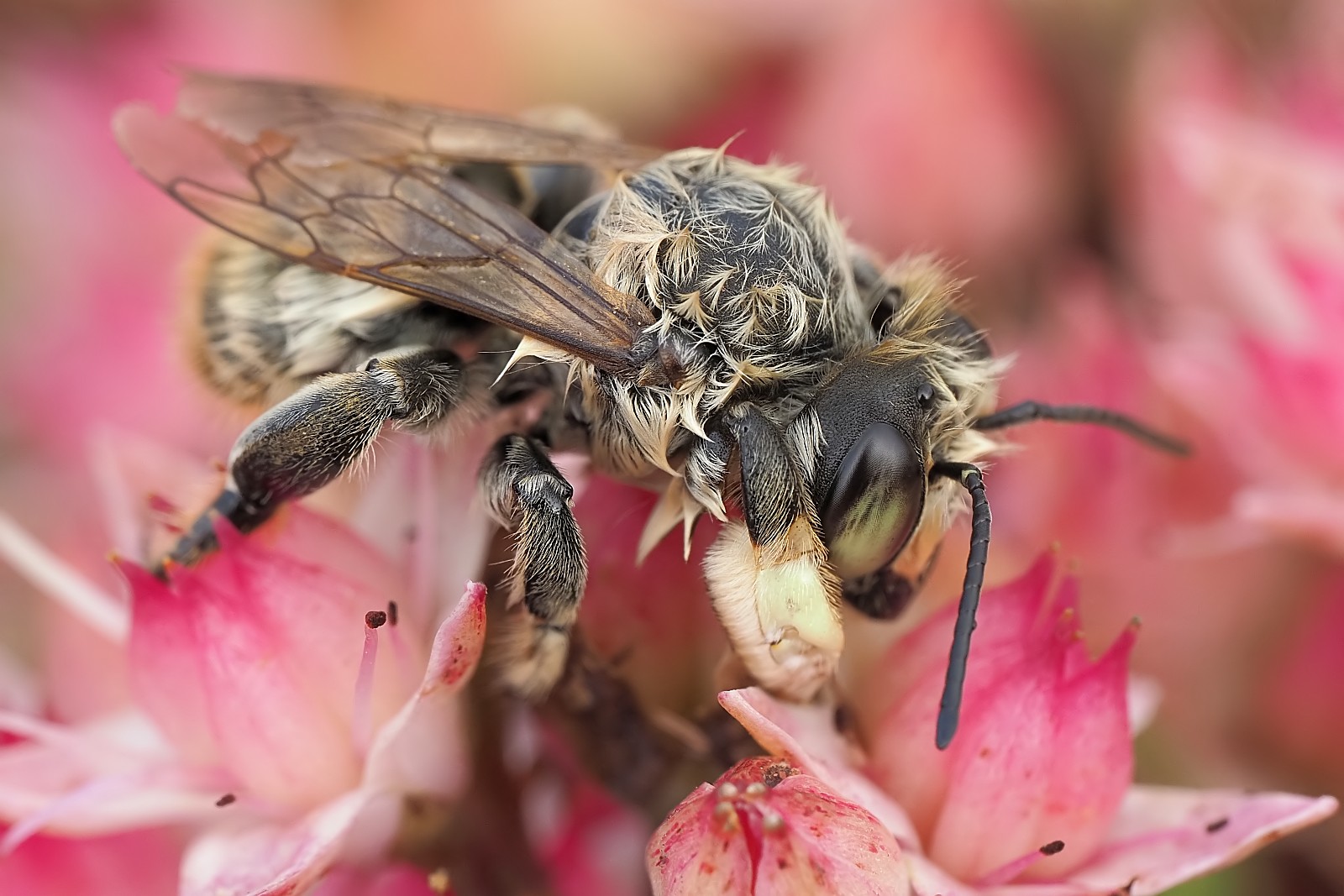 BTW Jestem wielkim miłośnikiem oczu złożonych owadów i niemożność ich obrazowania w wielu przypadkach to dla mnie największa wada systemu micro 4:3 w porównaniu do pełnej klatki. Przy mniejszej matrycy trudno o właściwe powiększenie większych owadów, żeby jednocześnie zmieściły się ładnie w kadrze. Z maluchami nie ma problemu, ale z modliszką czy nawet mniejszymi owadami już nie ma szans, żeby była cała w kadrze + ładna kratka na oku.