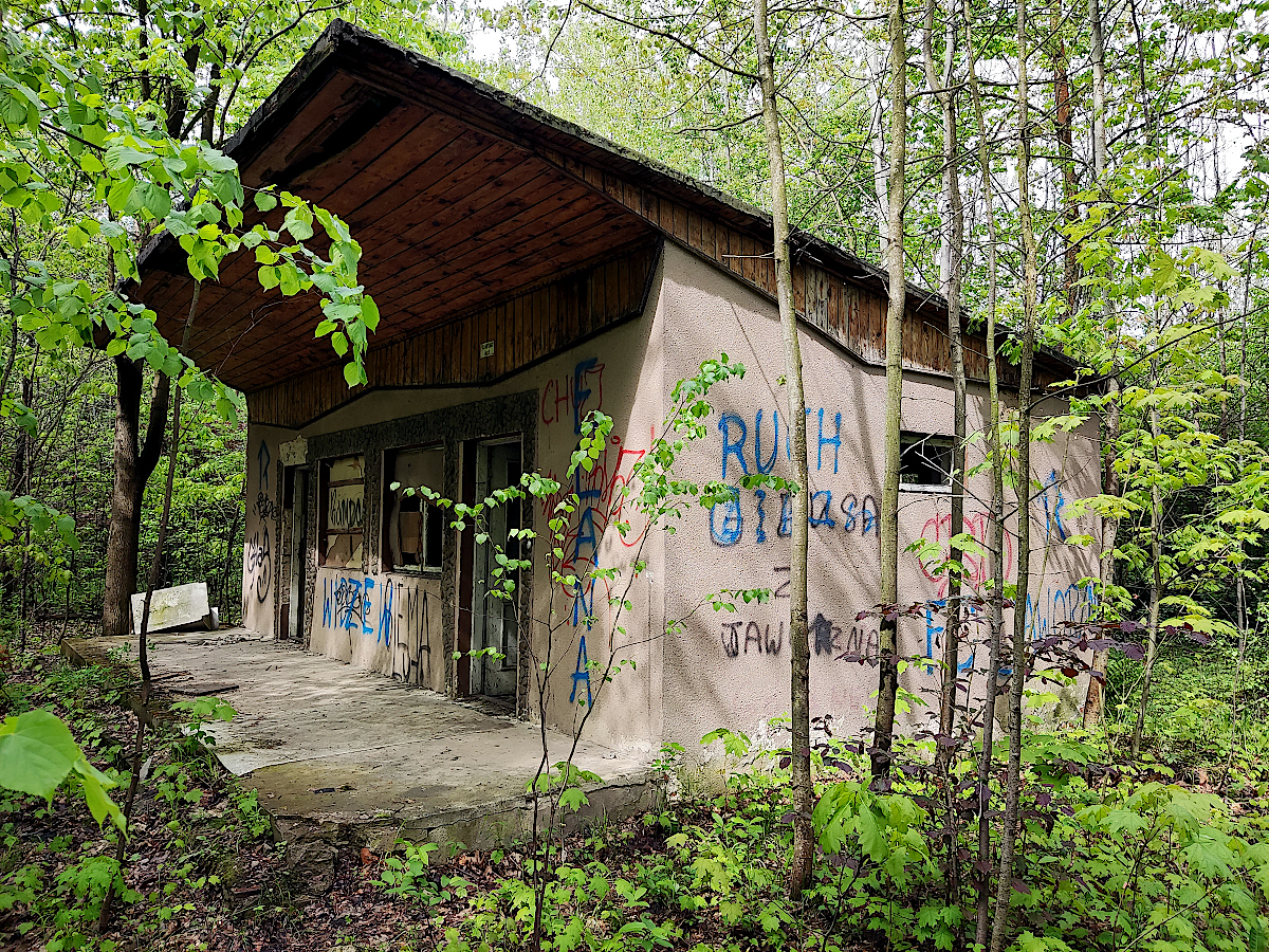 Pozostałości ośrodka wypoczynkowego Leśny Dwór w Bukownie.