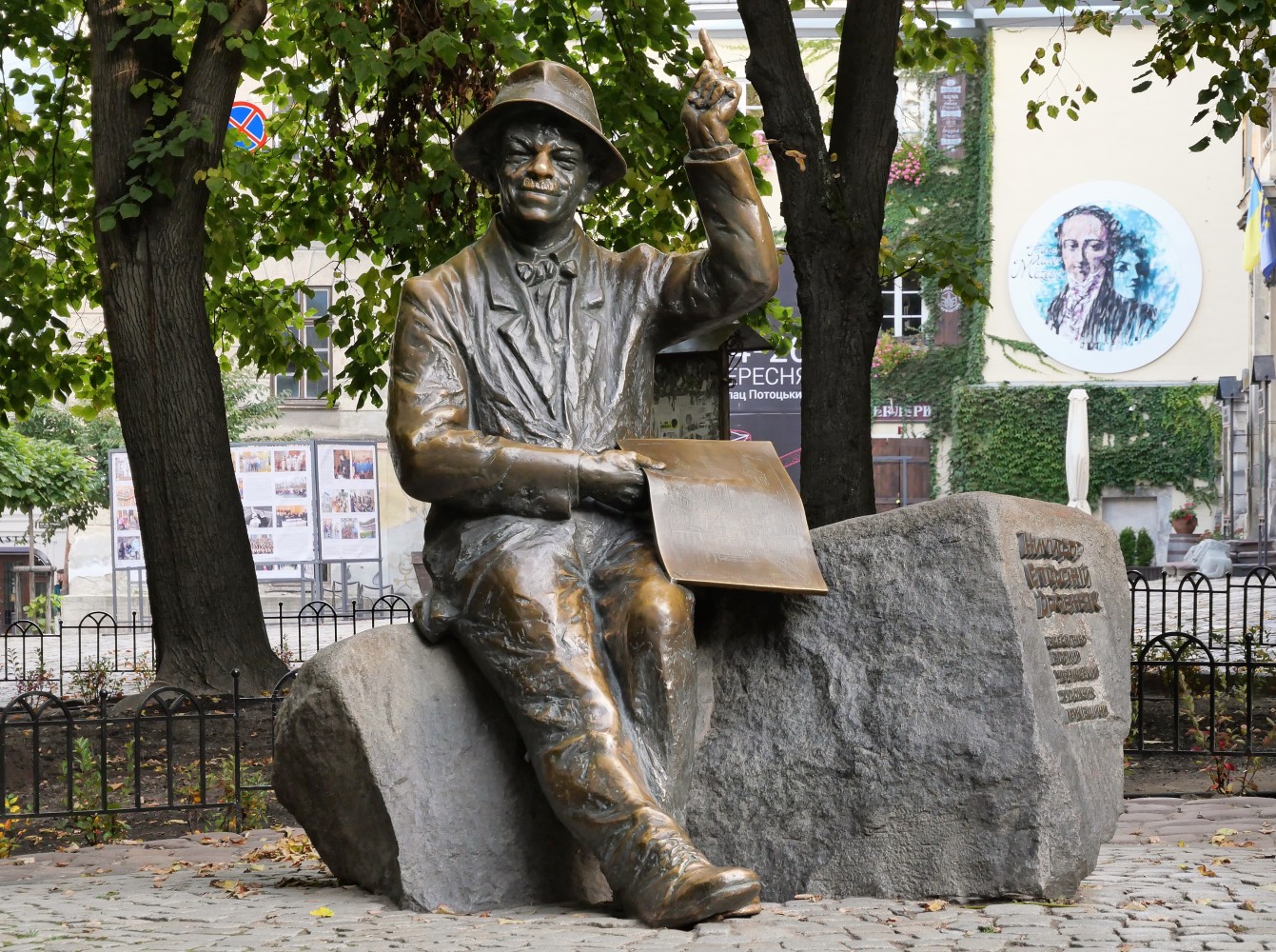 Nikifor Krynicki na placu Muzealnym we Lwowie.