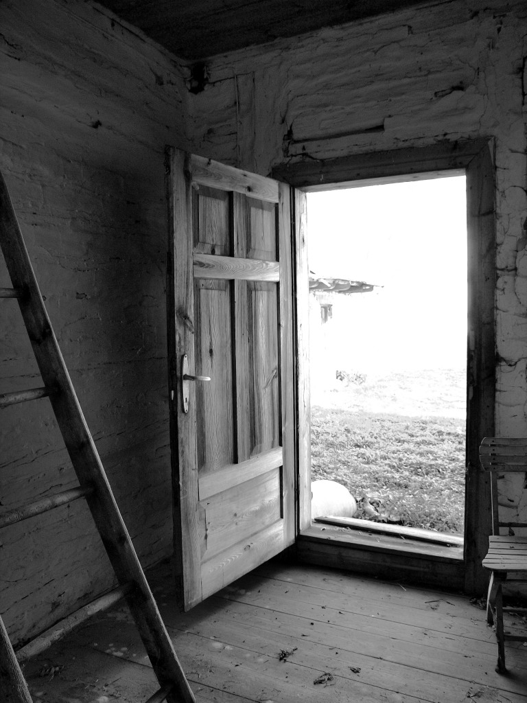 Nie całkiem zwykła, w czasach świetności, gdy wieszano ten schowek gospodyni nie dopuściłaby do zalęgnięcia się tylu pająków, a i deski stołeczka były zapewne białe od ciągłego szorowania... Dziś wygląda to jak przedsionek do obórki , gdzieś między nią a nowym domem.