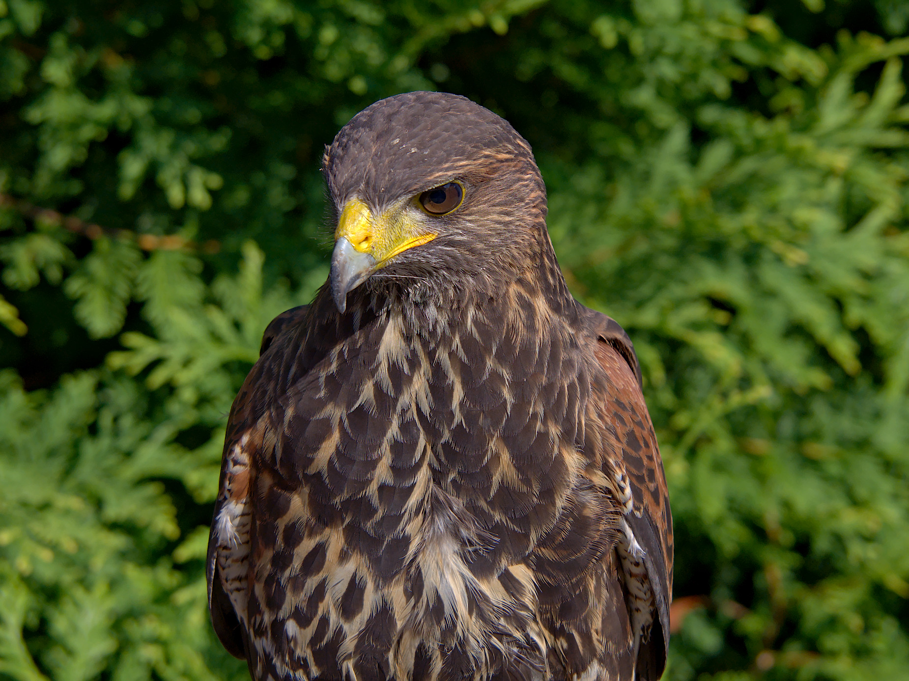 to jest jastrząb kaukaski - samiec. Waży ok. 600 g - bardzo lekki, prawie nie czuć go na ręce. Jest uczony do pokazów, sam nie poluje i wg właściciela nigdy nie będzie polował.