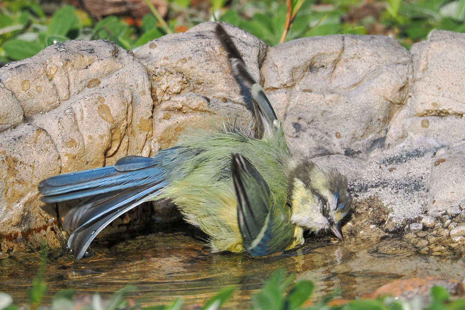 Wspólna kąpiel - samica kapturki z rudzikiem: