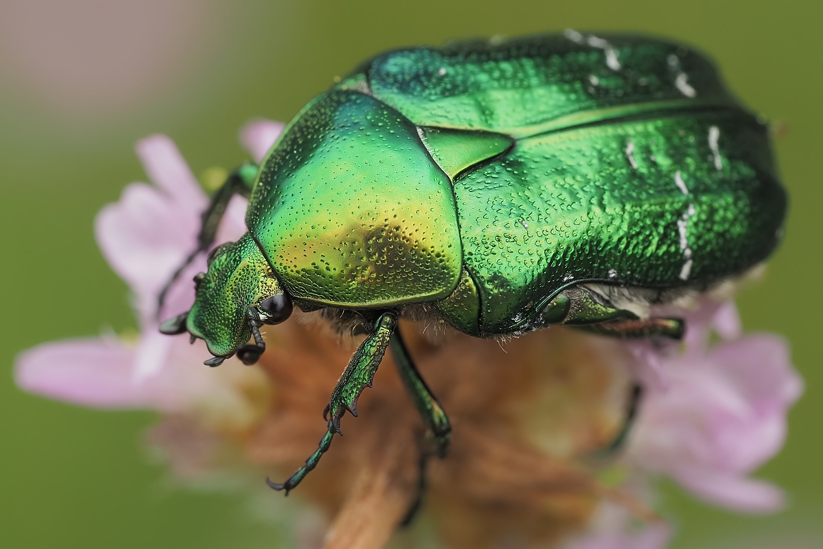 Moim zdaniem 8599 jest trochę mydlane. Jakby było za bardzo odszumione (choć widzę, że ISO tylko 800) / mocno cropowane / nieostre / poprawione za bardzo AI. Niby skrzydło od frontu jest idealnie ostre, a faktura przedplecza i odwłoka ładnie widoczna, ale za to tło, oczy, odnóża czy czułki wydają się zbyt gładkie i niekiedy (zwłaszcza tło) mają dziwne plamy. Może to spowodowała kompresja do JPG, a może zmniejszenie rozdzielczości?