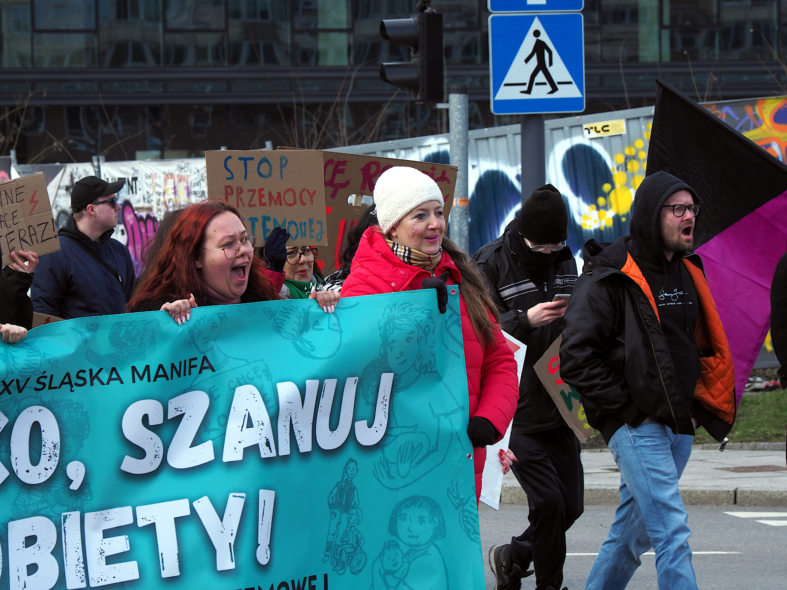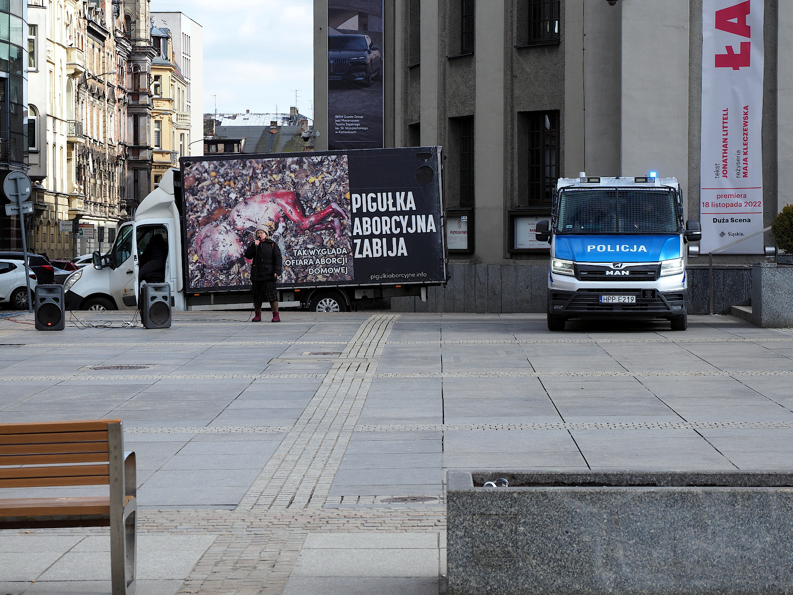 Niewielka kontrmanifestacja , która sprzeciwia się aborcji.