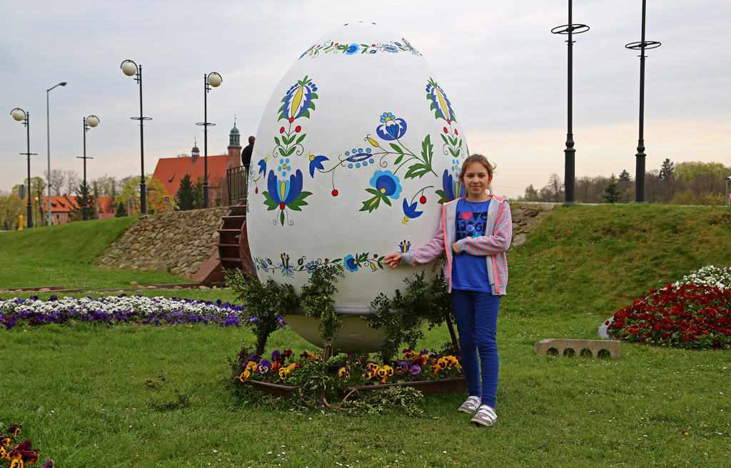225. Żukowo - prawdopodobnie największe jajko świąteczne. Dziewczynka, o której pochodzeniu do dziś spierają się uczeni, dla odwzorowania skali