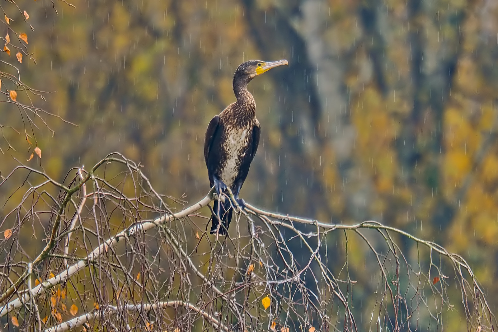 Kormoran w deszczu: