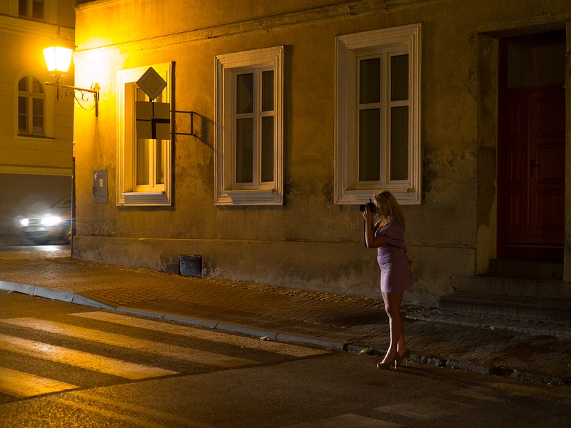 Z ratusza udaliśmy się w kierunku kościoła św. Ducha. Jak się okazało, wiele osób przyszło na nocne fotografowanie, pani na kolejnym