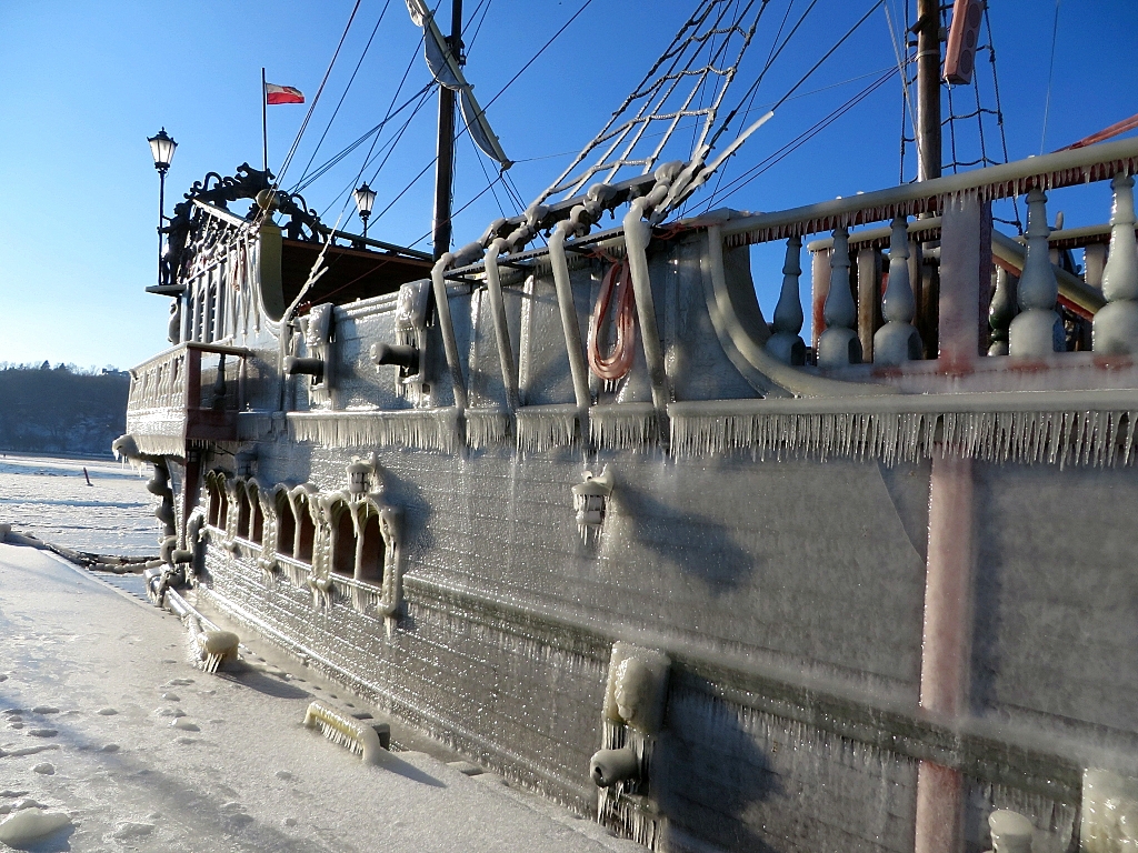 Ale warto było pomarznąć i zobaczyć krainę z lodu w gdyńskim YKP - oblodzony falochron, statek z lodowymi koronkami przymarznięty do kei, wiszące sople na lampach, warto było wykręcić salto na lodzie - bo było pięknie...
