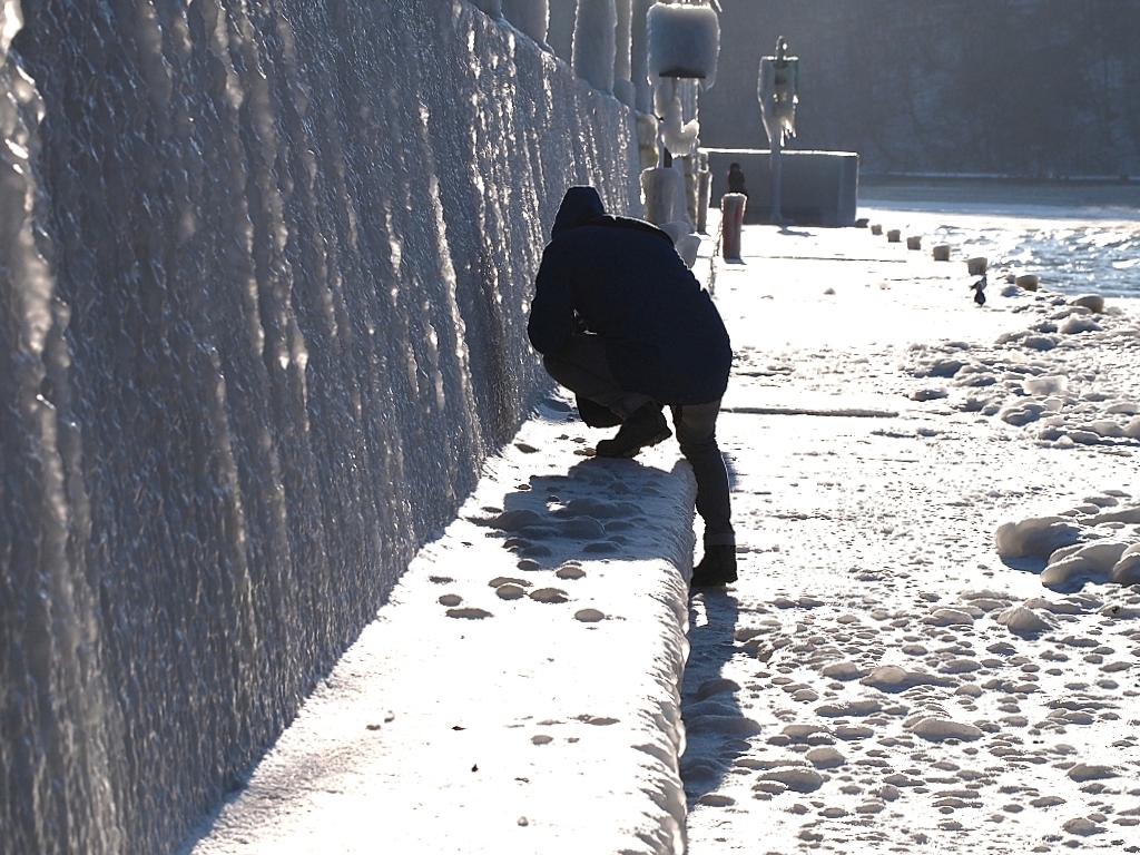 Przynajmniej nie jest nudno.. Salto było bez piruetu, nic się nie stało. Chodzenie wczoraj przy falochronie było wyczynem kaskaderskim bez względu na rodzaj obuwia. Po południu zamknęli już bramkę, bo faktycznie było niebezpiecznie. Z przerażeniem patrzałam jak facet kazał swojej dziewczynie podejść bliżej statku, żeby zrobić jej zdjęcie.. A do wody było mniej niż pół metra i lodowisko. Kretyn.
