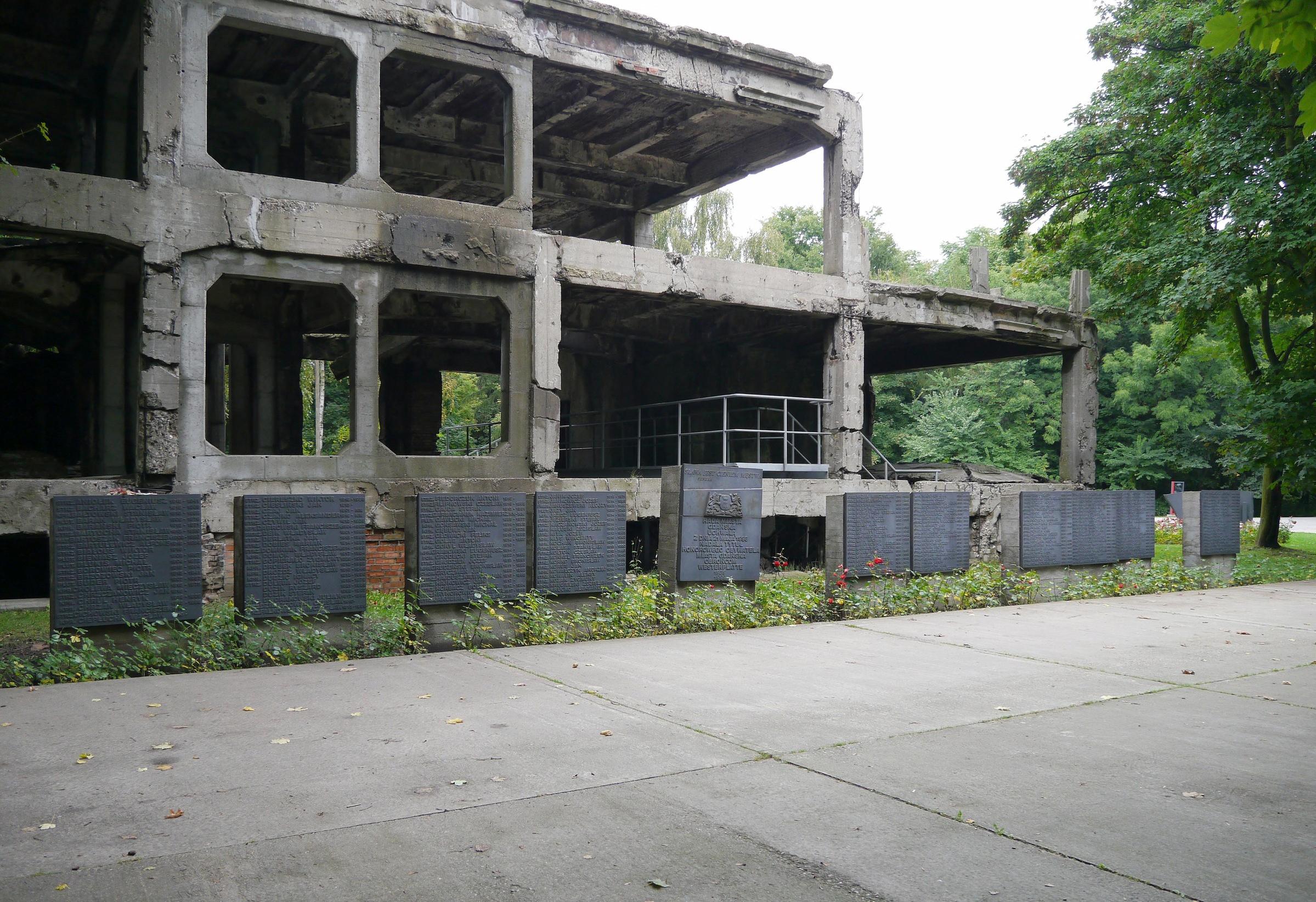 91. Tablice zawierające spis obrońców półwyspu, którym nadano honorowe obywatelstwo miasta Gdańska, znajdujące się przy ruinach Nowych Koszar na Westerplatte (zdjęcie celowo w takim rozmiarze, by można było odczytać informacje z tablic).
