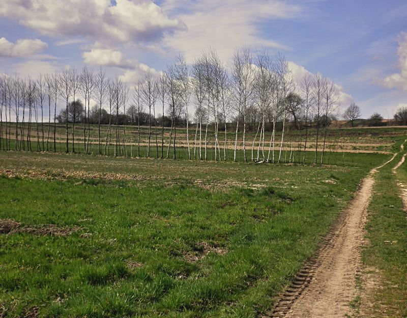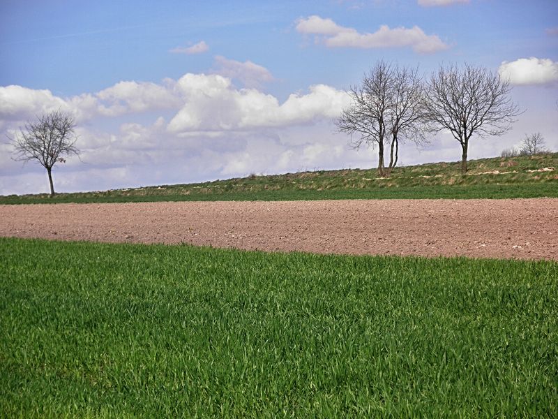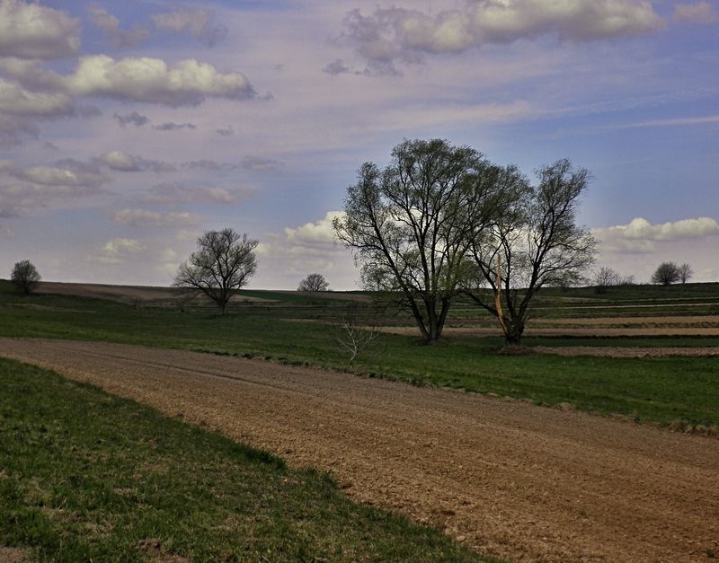 Wiosenne pola czekaja na swoj czas.choc tu i owdzie juz plony sie pojawiaja.Zagoscil nawet pan traktorzysta,ale mial chyba:szewski poniedziale i po przejechaniu czterch skib...obrocil sie ku chalupie.
