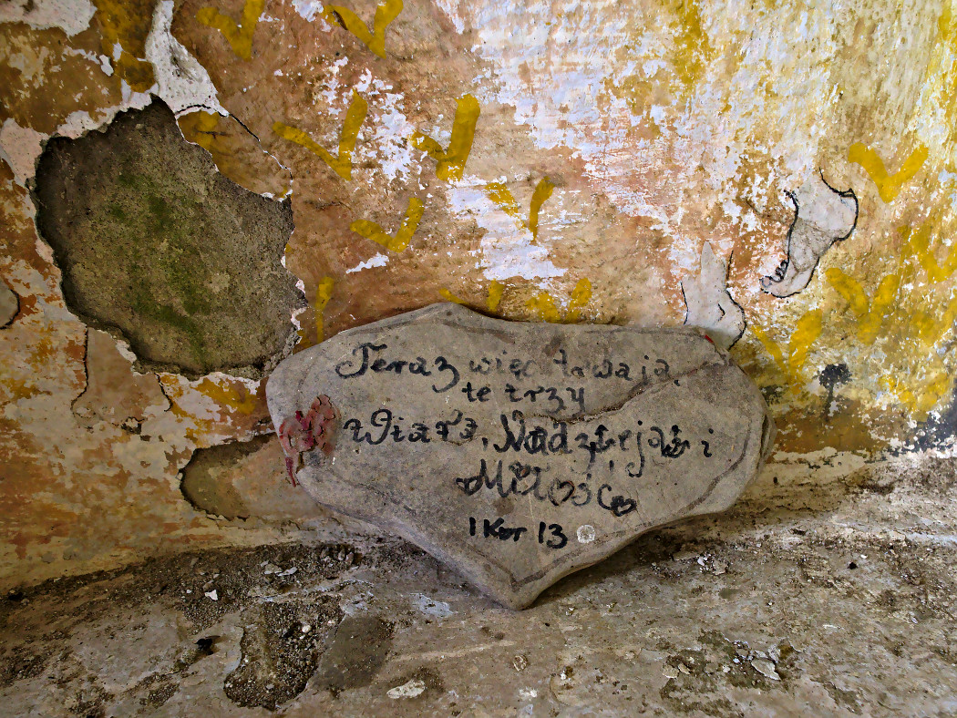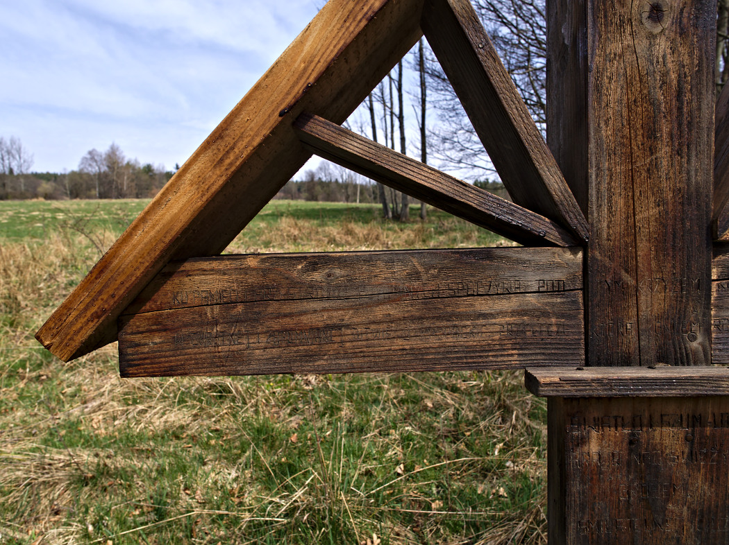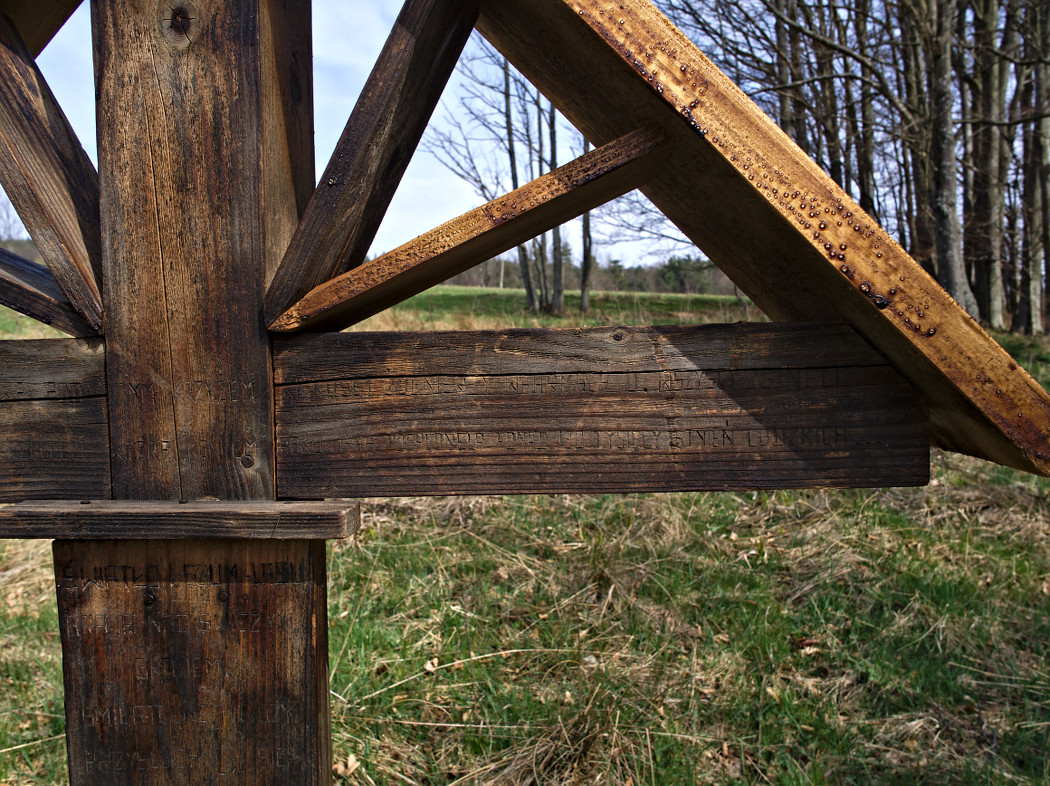 Tak, wiem że nie udało mi się dokładnie uwypuklić napisu na krzyżu. To trudne bez odpowiedniego oświetlenia. Napis wygląda jak wydrapany nożem, ale trwa już lata.