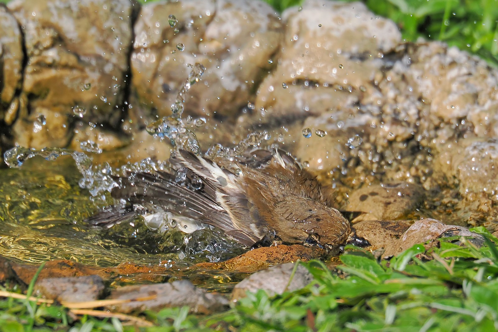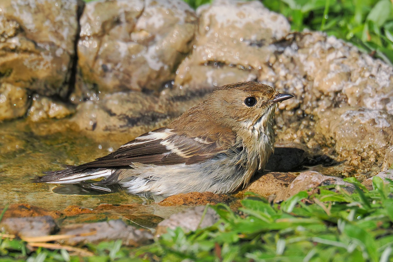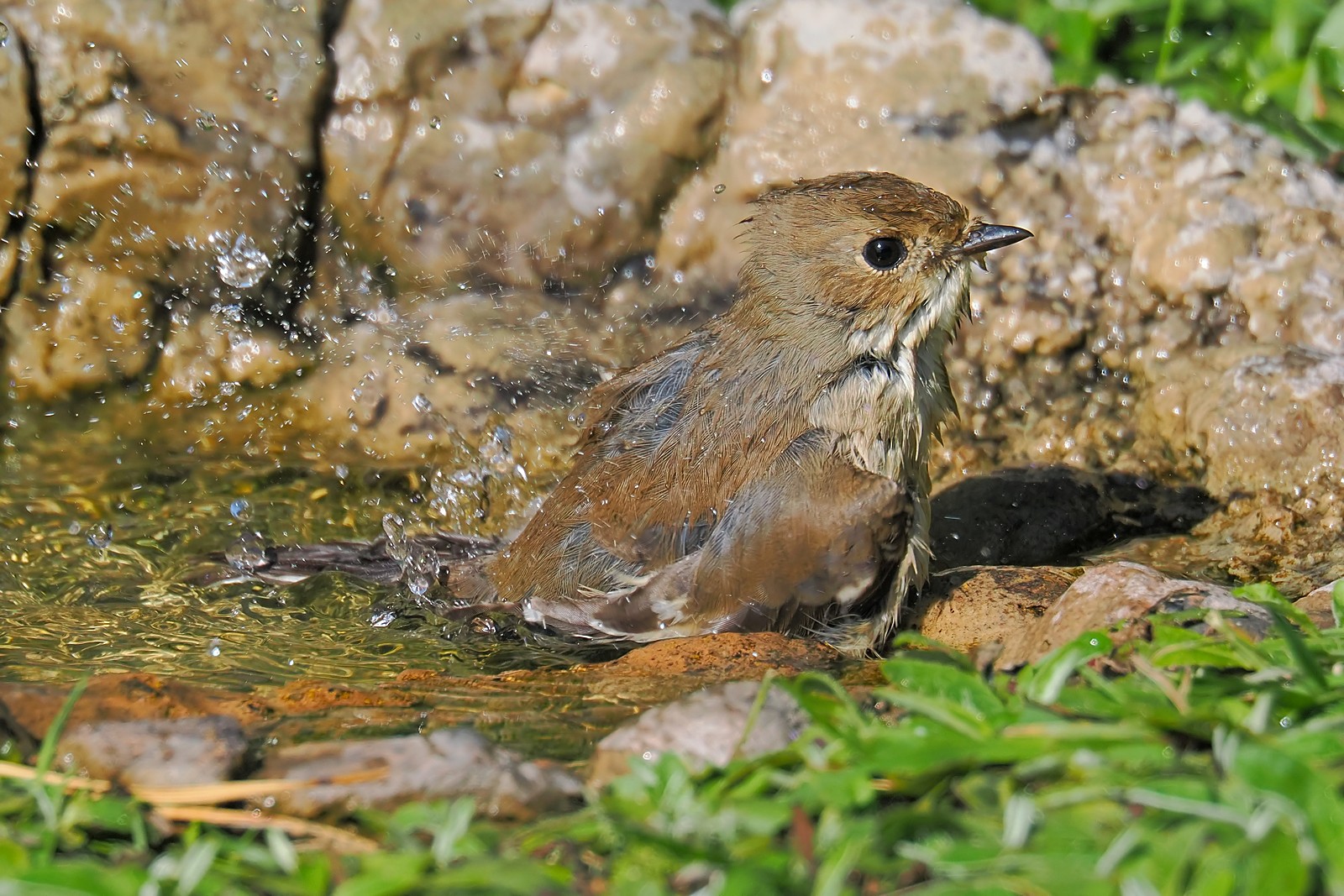 Kolejne zdjęcia przy baseniku - tym razem kąpieli zażywa muchołówka żałobna: