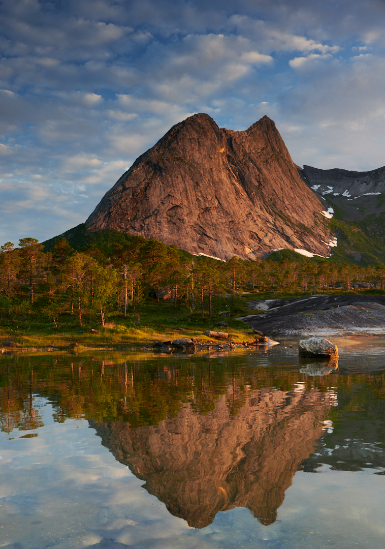Skalisty pagórek został tak sfotografowany, że stał się fascynujący (dla mnie), mimo, że na drugim zdjęciu został niby sztampowo ujęty - z odbiciem w wodzie, to symetria, drobnofalkowość odbicia i piękne światło (na północy jest inne niż w Polsce) robią swoje.
