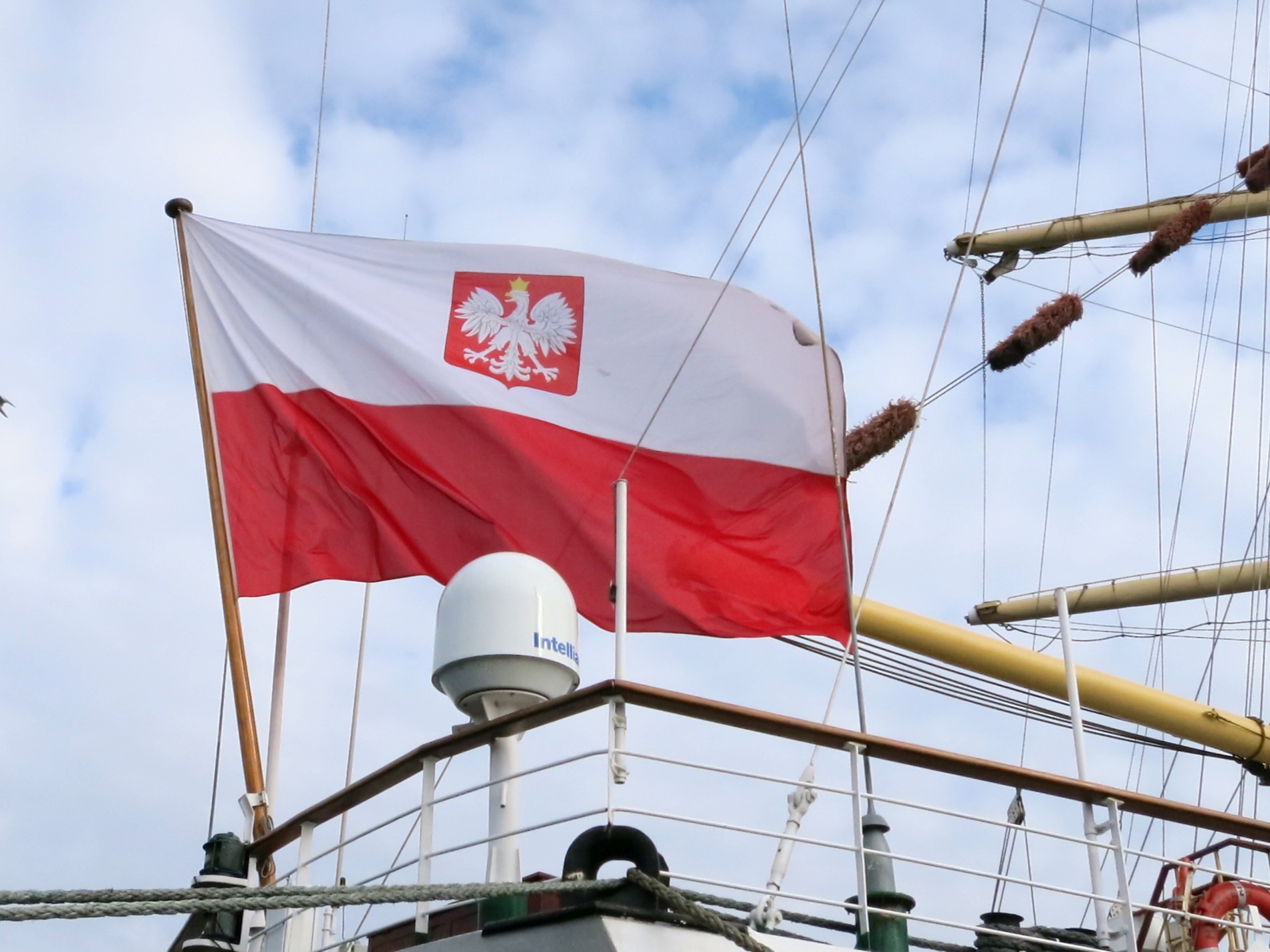 GD351. Gdynia. Bandera na żaglowcu "Dar Młodzieży".
