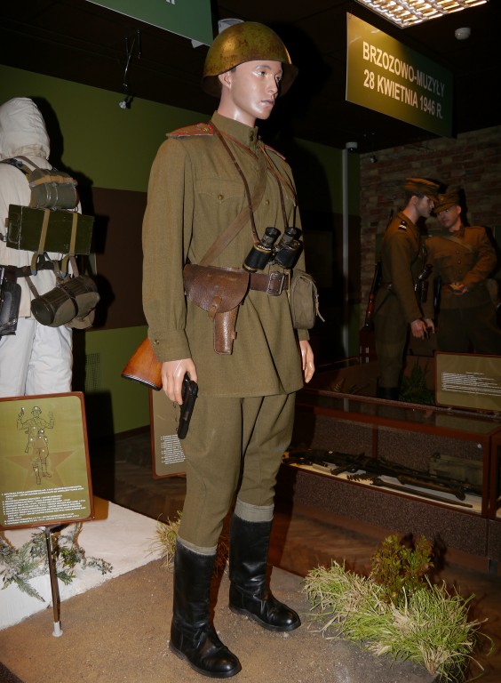 Rosyjski artylerzysta z lat 40-tych XX wieku, uzbrojony w 7,62 mm TT wz. 1933 oraz 7,62 mm PPSz wz. 1941 - Muzeum Wojska Białystok.