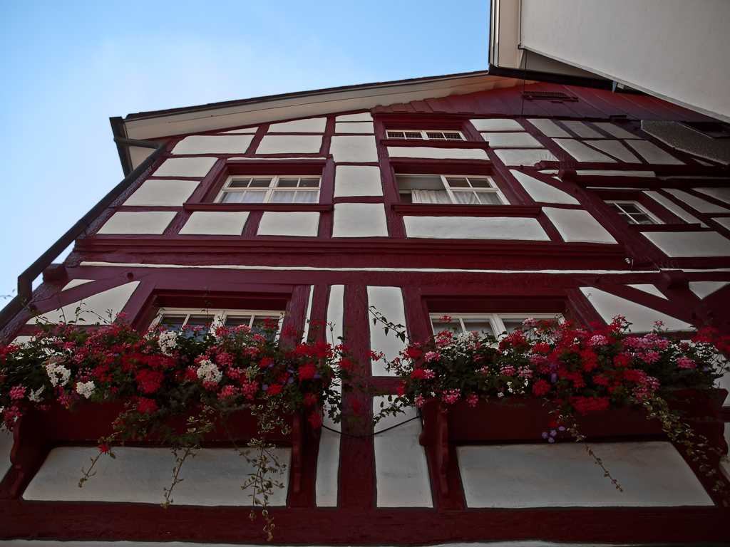 Nie wiem czy masz w PS taki filtr który do daje kontrast lokalny lub mikrokontrast. W Gimpie mam Local Contrast Enhancement. I tylko to nałożyłem na ścianę. Plus delikatne wyostrzenie kwiatków na pierwszym planie. Acha, i w niebie coś grzebnąłem :mrgreen:
