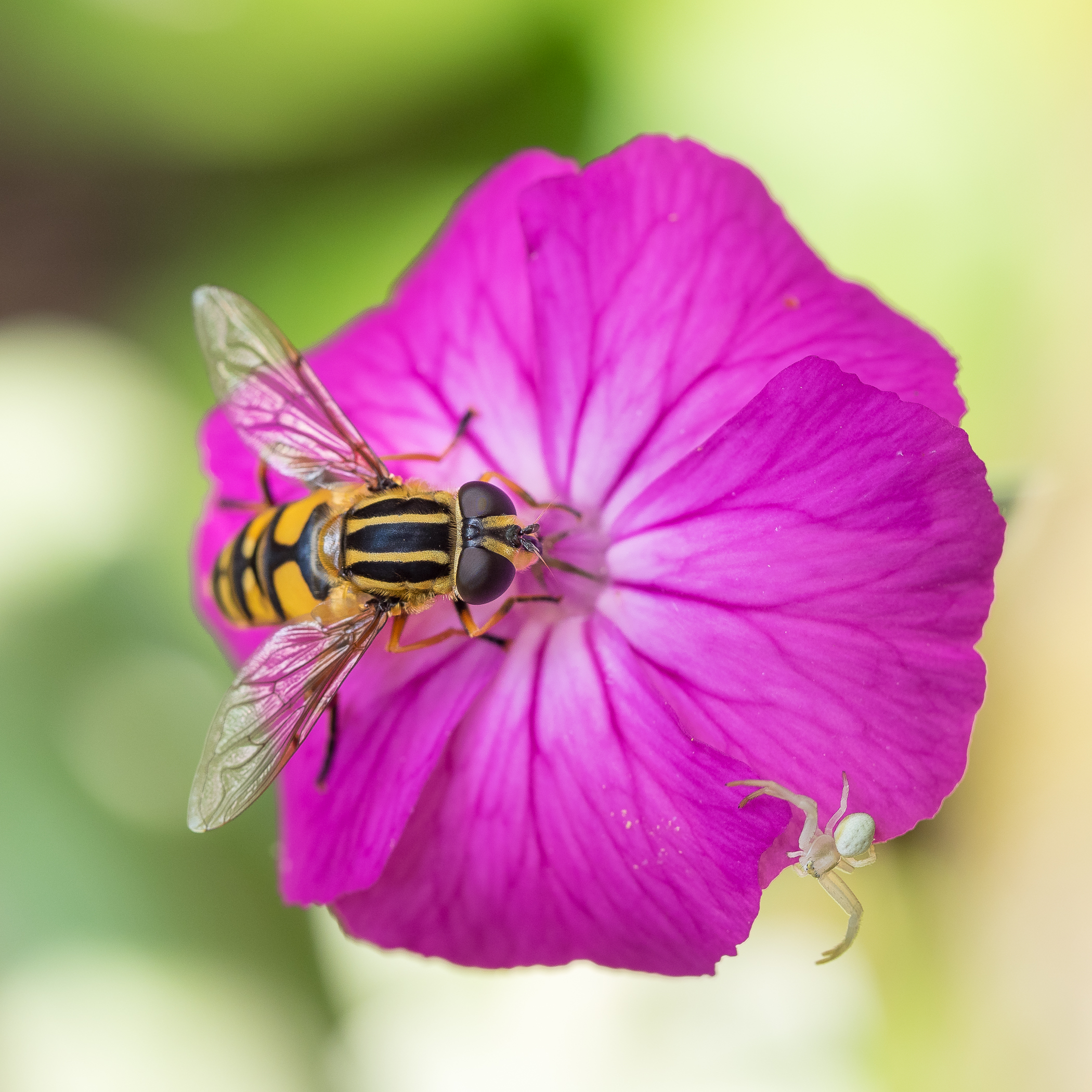 Ciekawe spotkanie. Miał bzyg szczęście że ten kwietnik nieco większy nie był. Jak zwykle ładny kadr, piękne światło i kolorystyka.
