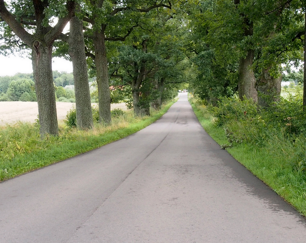 Kolejny kierunek - Kałki . Ze Srokowa na północ pod samą granicę w kierunku Brzeźnicy piękną drogą w cieniu dębów i grabów