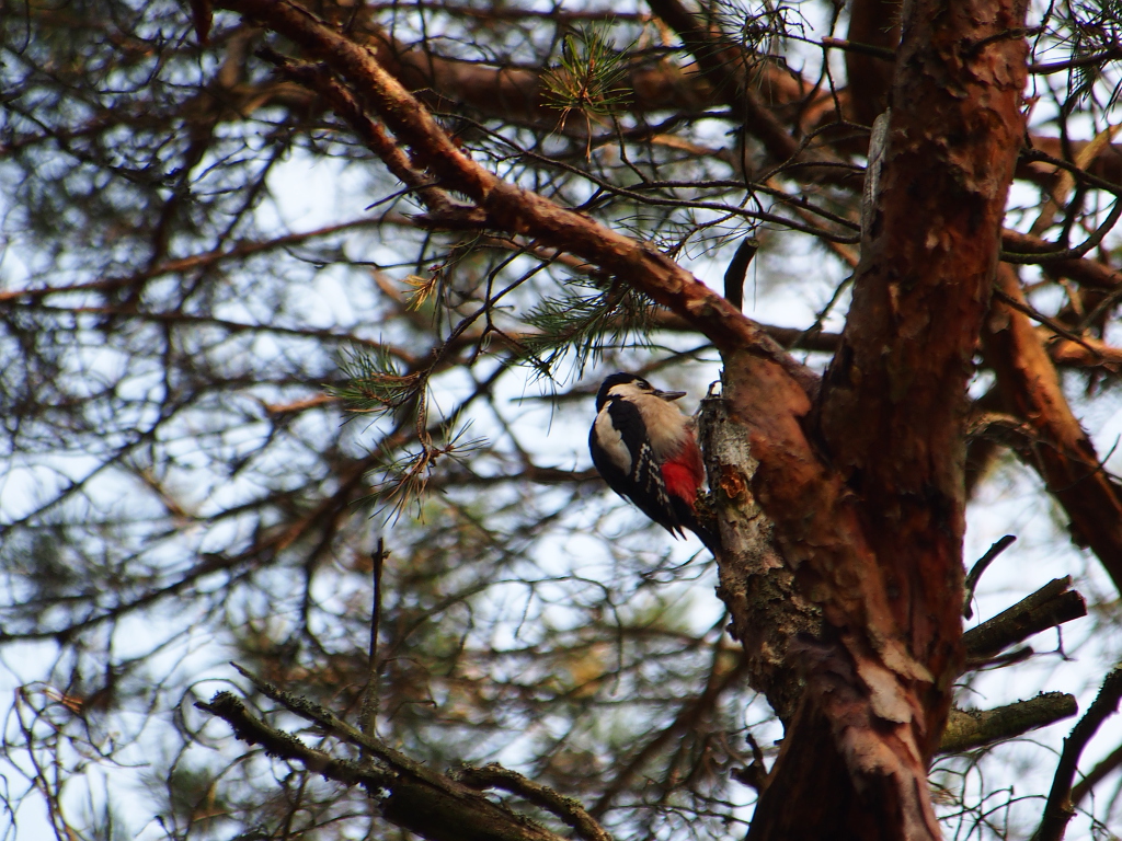 Z traktu odbiłem na Trzcianne, zwyczajowo, po drożdżówki. Stanąłem czerwone dąbki sfotografować i wtedy usłyszałem dzięcioła nad głową.