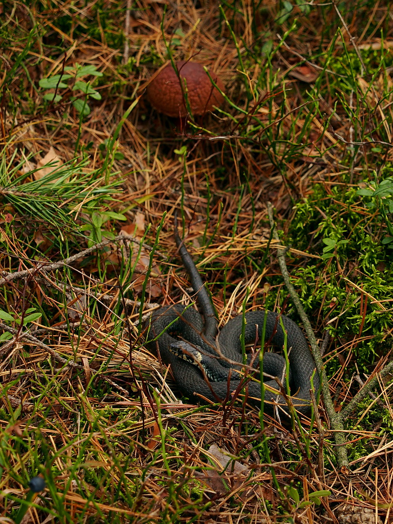 Ponieważ światełko za specjalne nie było i wiać nie chciało wybrałem się na grzyby z aparatem, spotkałem dwa zaskrońce i miedziankę (dla mnie miedzianka to gniewosz plamisty, a okazało się że to była jednak żmija zygzakowata też zwana miedzianką).