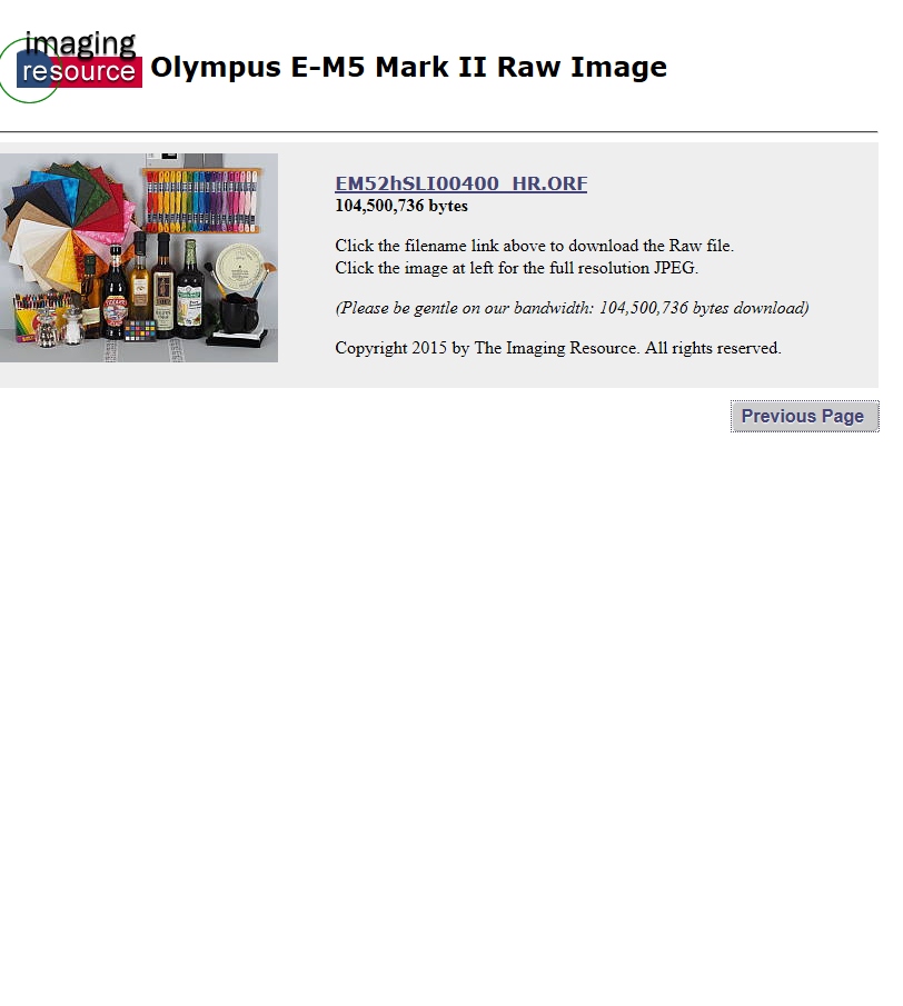 Na prawo od obrazka jest podany w bajtach rozmiar 64 megapikselowego pliku raw czyli .ORF. Wynosi on nie 60 MB, jak przypuszczałeś, tylko 100 MB.