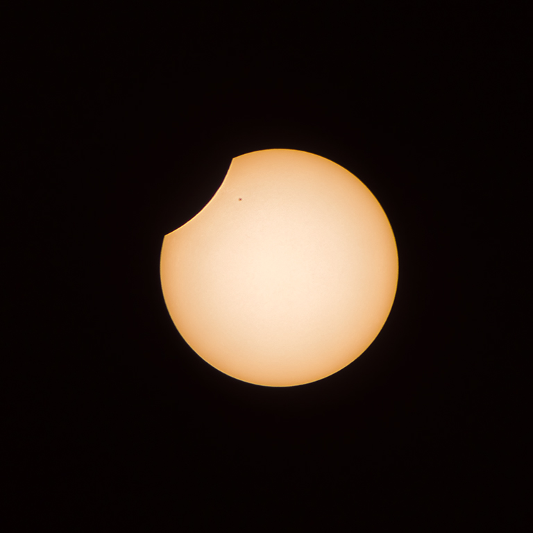 Tym razem nietypowo całkiem, ale zmieści się w tej formule. Chyba we wtorkowy wieczór zainspirowałem Andrzeja podsyłając mu link gdzie można było kupić folię astronomiczną, z sugestią, że jest już po ptakach. No i nie doceniłem go. W czwartek była folia, zrobiłem filtr, który z pomocą rąk chirurga skleiliśmy do kupy. A w piątek to ja musiałem cykać zaćmienie, zostając nietypowo tutaj, autorem i strzału i obróbki. Ponieważ cały sprzęt, a to body, a to obiektyw, statyw, folia i na koniec pomysł umieszczenia tego tutaj – są Andrzeja, to moja nieopatrzna wtorkowa uwaga spowodowała takie oto konsekwencje. W exif'ie znajdziecie wszystko.