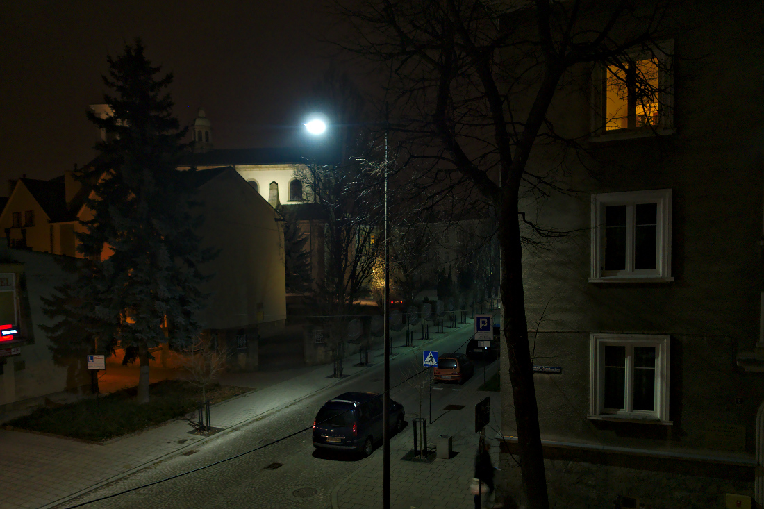 No dobrze, przyznam się. Wstałem rano i jako że mieszkam 200 m od kościoła - patrzę... kościoła nie ma. Są tylko cudowne smugi światła z reflektorów.