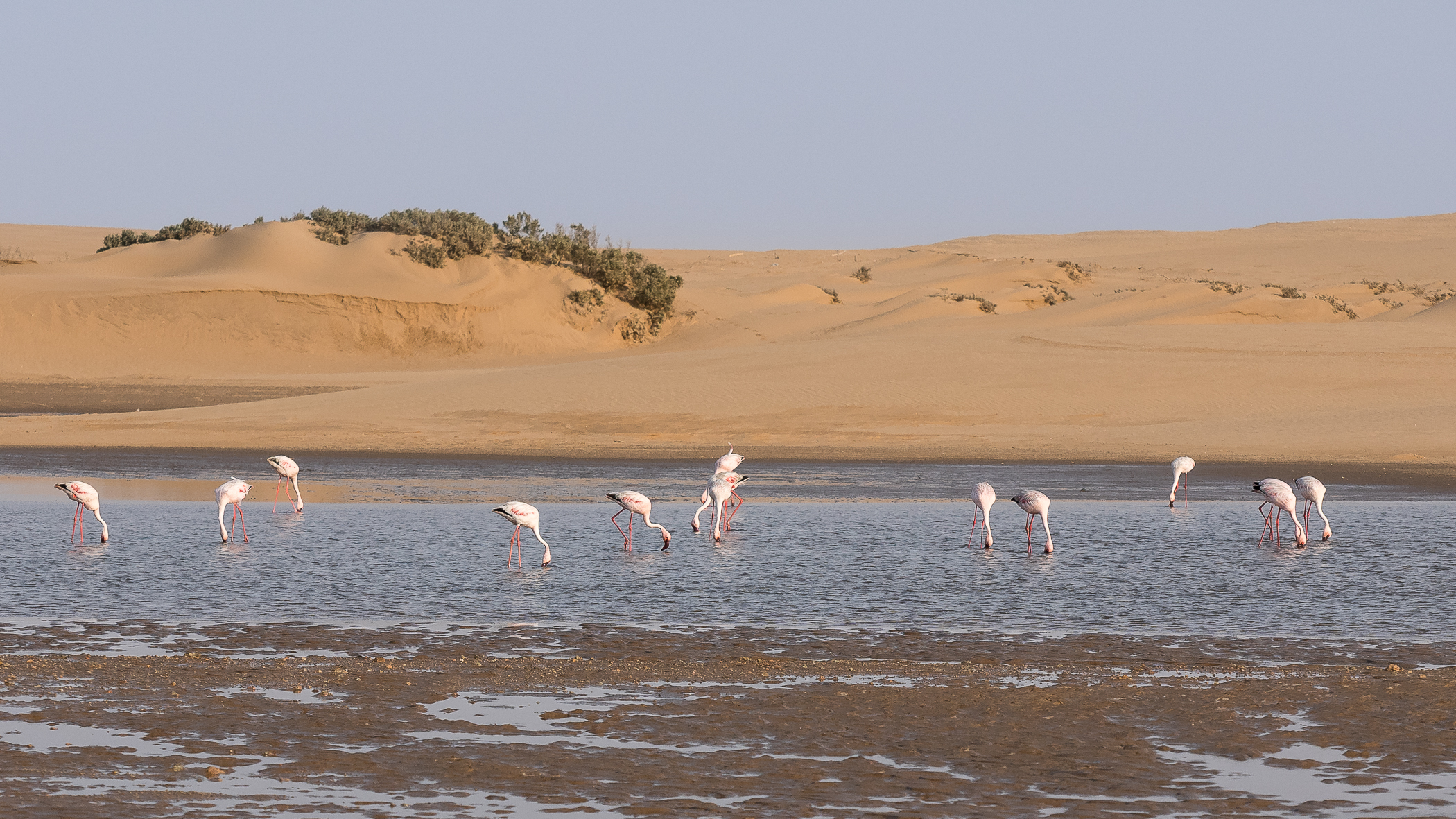 Flamingi. W pobliżu Walvis Bay są ich tysiące.